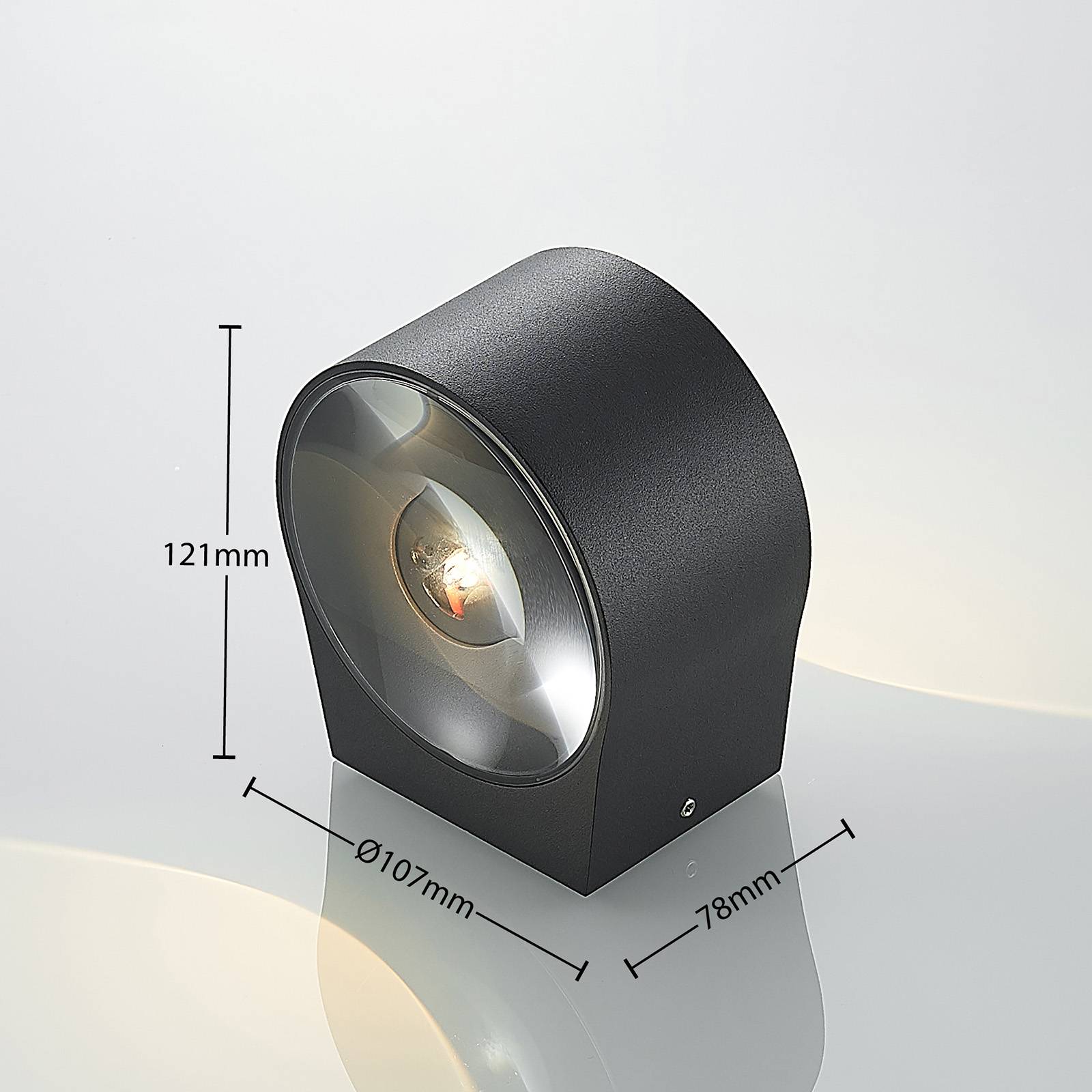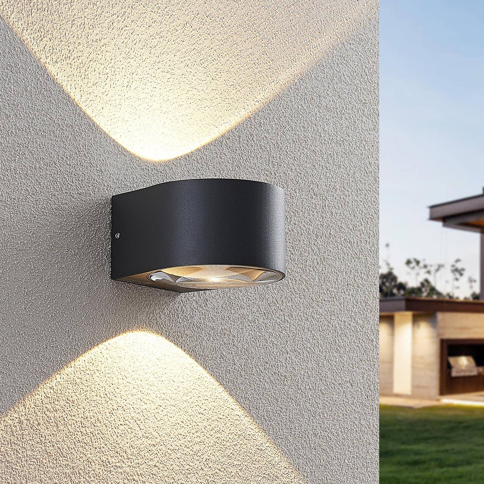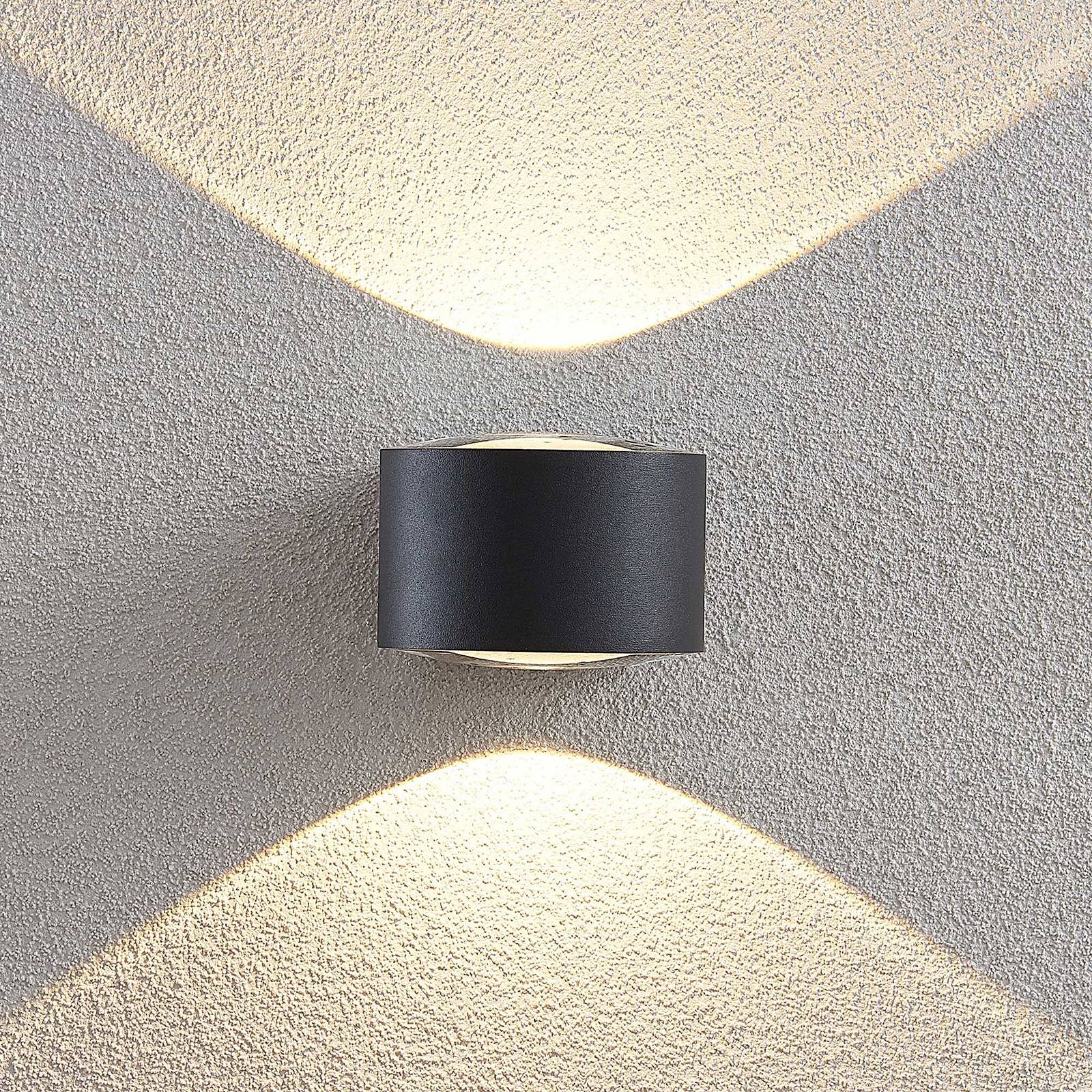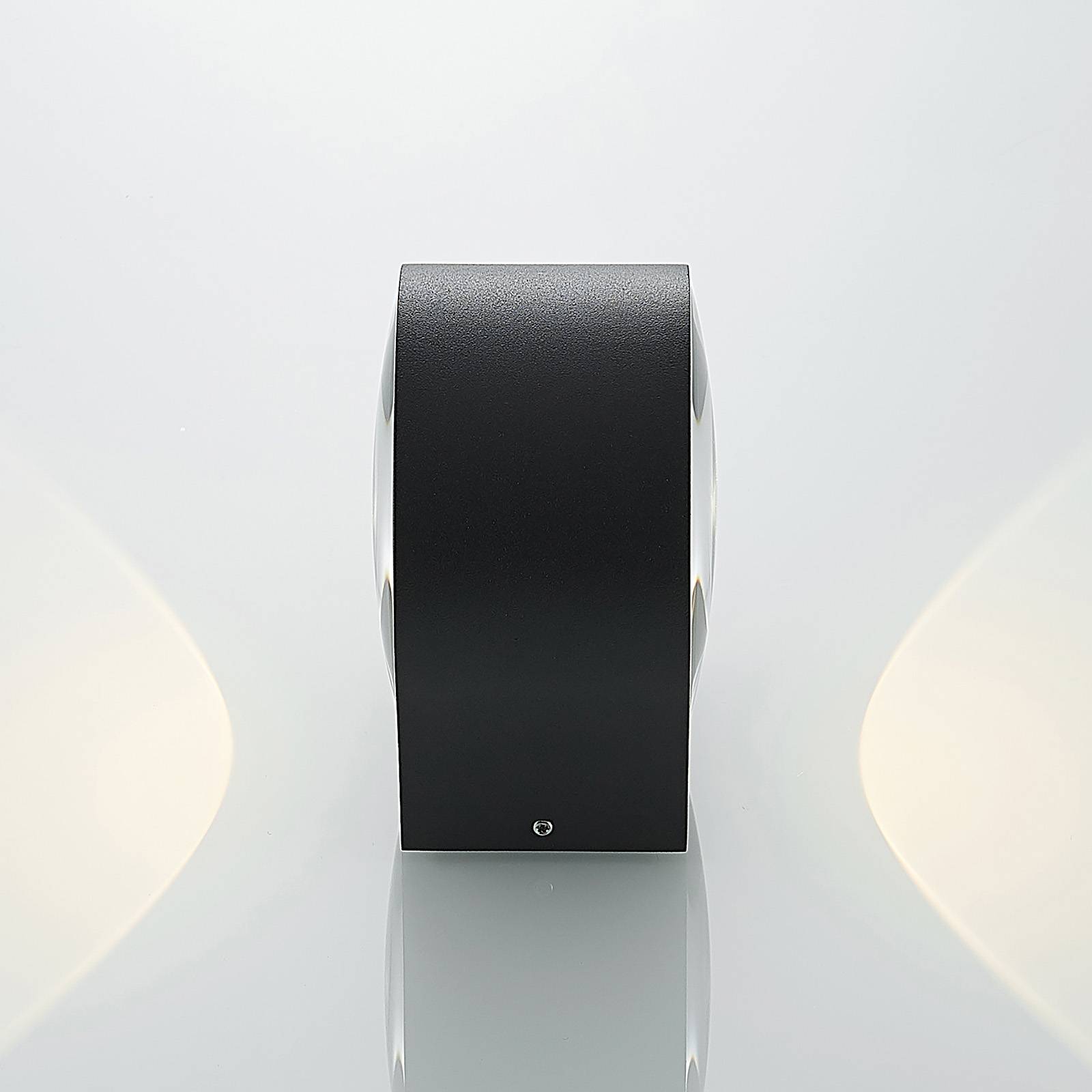 Tmavě šedé LED nástěnné svítidlo Astrida se dvěma skleněnými difuzory pro efektivní světlo Astrida se skládá z válcového tělesa svítidla vyrobeného z hliníkového tlakového odlitku. Nahoře a dole se nachází skleněný difuzor, která poskytuje zvláště krásné světlo, které se vyznačuje silnými konturami. Již z dálky je tento světelný efekt jasně viditelný a činí fasádu domu stylovým objektem i v noci. Toto nástěnné světlo se obzvlášť hodí do moderního venkovního prostředí. Astrida vykazuje dobrou odolnost proti nárazům (IK06) a díky možnému kabelovému propojení lze některá světla pohodlně umístit vedle sebe.