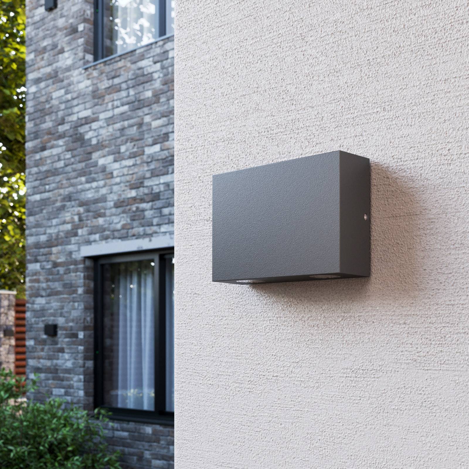 Venkovní nástěnné LED svítidlo Henor se 4 zdroji světla, svítící nahoru a dolů Po zapnutí vytváří venkovní nástěnné svítidlo Henor se 4 LED zdroji značky Everlight úžasné světelné efekty. Každý paprsek světla je oddělený od ostatních, i když není přímo vidět, kde se nachází žárovka. Avšak nejen tento znak tohoto nástěnného svítidla pro venkovní použití si zaslouží vyzdvihnout. Neméně výjimečná je energetická úspornost – každý ze 4 LED světelných zdrojů spotřebuje pouze 1 W elektrické energie, přitom svítí obzvlášť jasně. Barva vyzařovaného světla s teplotou 3 000 kelvinů je příjemně teple bílá a jednoduchý obdélníkový vzhled předurčuje svítidlo k použití v každém prostředí, obzvlášť však v moderně laděném.