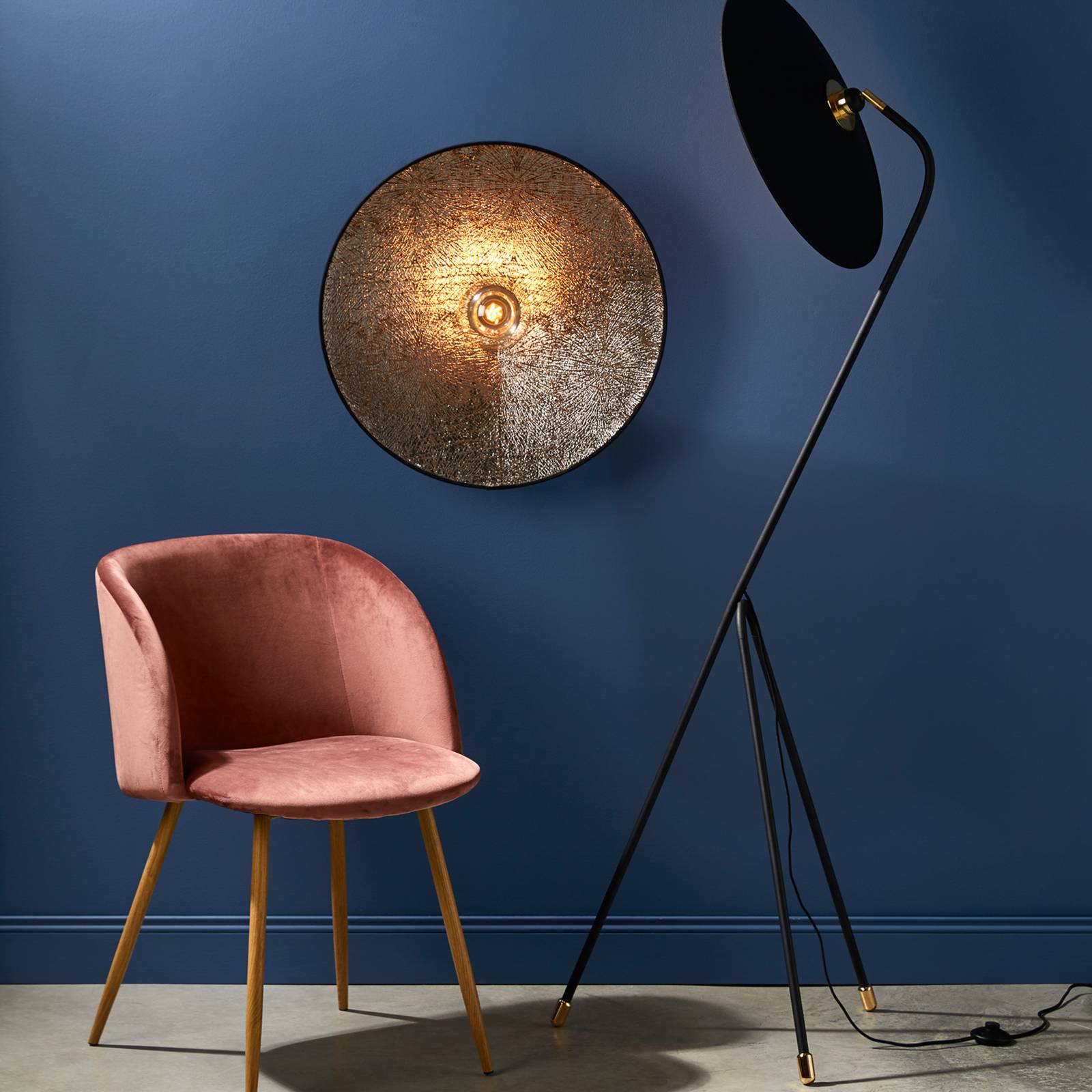 Stojací lampa Gatsby se vzorovaným látkovým stínidlem a štíhlým trojnožkovým rámemTento světelný zdroj francouzské designové značky MARKET SET naplní obývací pokoje a salonky okouzlujícím nádechem stylu Art Deco. Šikmé stínidlo je pokryto textilní vrstvou s charakteristickým vzorem, který se při zapnutí světla ještě zvýrazní. Štíhlý podstavec a zakřivený prvek z černě lakovaného kovu doplněný ve spodní části tvoří klasický trojnohý rám. Stojací lampu Gatsby doplňují elegantní mosazné detaily.