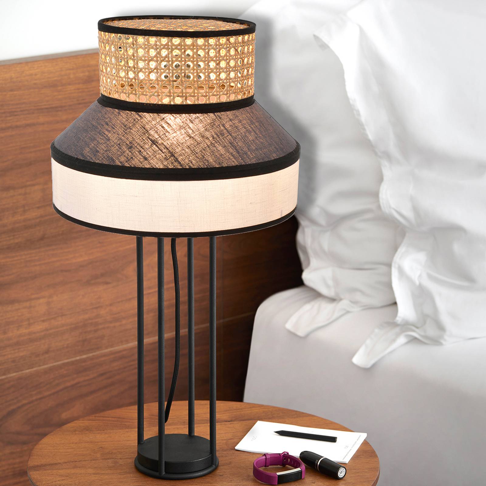 MARKET SET Singapour stolní lampa, bílá/antracit, Obývací pokoj / jídelna, textilie, ratan, kov, E27, 40W, K: 59cm