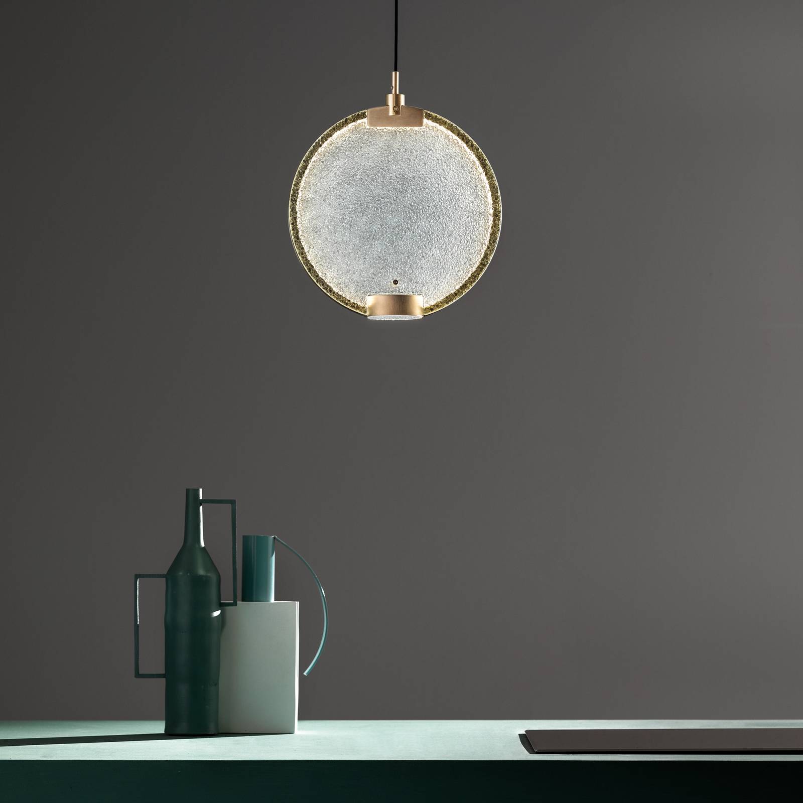 Vyrobeno v Itálii: Závěsné svítidlo Horo S1 LED Závěsné svítidlo Horo S1 LED s mosazným rámečkem a průhledným sklem dodá každému obývacímu pokoji nebo chodbě moderní nádech. Díky integrovanému, teple bílému světelnému zdroji LED poskytuje příjemné světlo, a je tak nejen vizuální, ale i technickou zajímavostí. Svítidlo je vyrobeno v Itálii a zaujme svým čistým stylem. U závěsného svítidla Horo S1 LED se můžete spolehnout na místní původ a nadčasový design.
