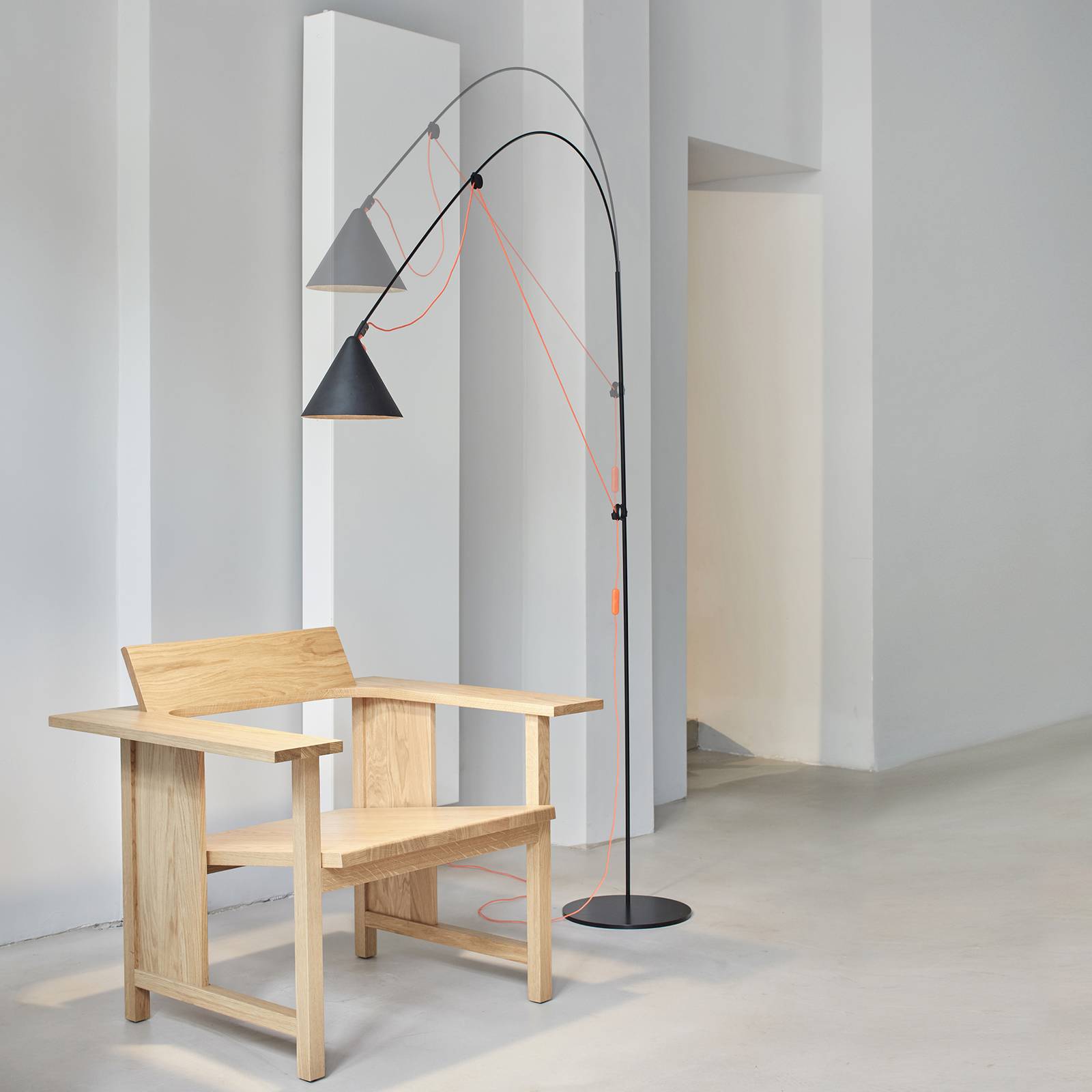 Ve tvaru variabilního oblouku – stojací lampa AYNO LED se stmívačemVýrobce svítidel midgard byl založen inženýrem Curtem Fischerem (1890-1956), který je považován za vynálezce směrovatelného světla. Řada AYNO je moderní interpretací této myšlenky od průmyslového designéra Stefana Dieze. Stojací lampa AYNO je kreativní, chytrý a všestranný zdroj světla pro obývací pokoje a salonky, stejně jako pro prestižní obchodní prostory a kanceláře. Nad kulatou ocelovou základnou se zvedá svislá rámová tyč, z níž vystupuje rameno ze skelných vláken. To je zpočátku svislé díky svému vlastnímu napětí. Textilní kabel, který vede vně, je upevněn dvěma nastavitelnými kroužky, které v závislosti na vzdálenosti táhnou kabel, a tím naklánějí rameno směrem dolů. Tím se AYNO během okamžiku promění v obloukovou lampu. Další možnosti nastavení poskytuje stmívač na zásuvném kabelu a otočné uchycení kuželovitého stínidla. Ten je vyroben z recyklovaného polykarbonátu/ABS plastu a je v něm umístěn vysoce kvalitní LED modul (CRI ≥ 95), který lze v případě závady snadno vyjmout (bajonetová západka). Strukturovaný kryt zajišťuje homogenní rozptyl a snížené oslnění (UGR ≤ 16) světla.- Vítěz německé ceny za udržitelný design 2020
