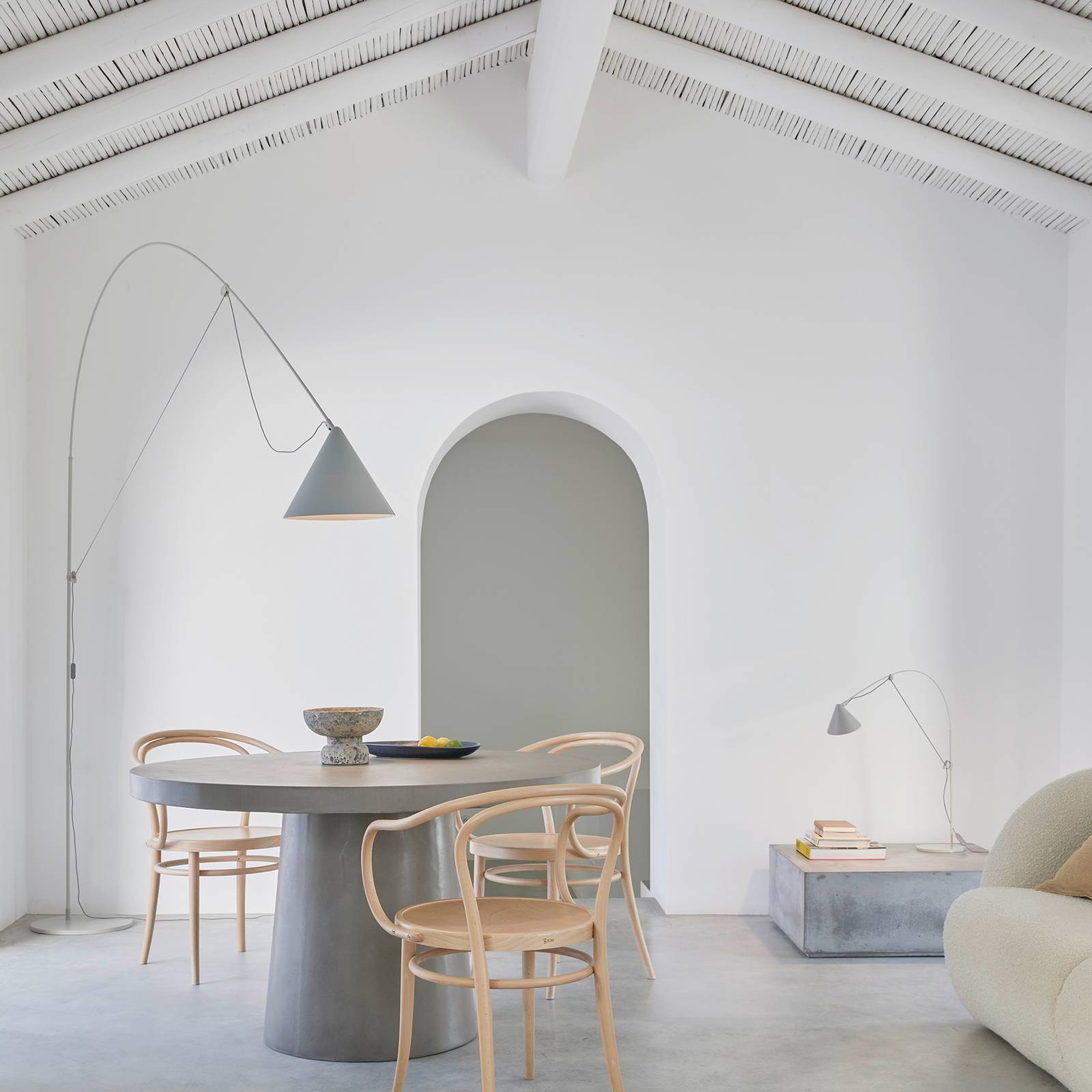 Obzvláště vysoká stojací lampa AYNO LED ve tvaru variabilního oblouku, vybavená stmívačemStojanová lampa AYNO je díky své obrovské výšce, přizpůsobivosti a modernímu designu moderním poutačem pro velké místnosti, a to jak v soukromých, tak v komerčních/veřejných prostorách.Myšlenka dosažení směrovatelného světla s nastavitelnou konstrukcí je stará již přibližně sto let. Jejím původcem je inženýr Curt Fischer (1890-1956), který se proslavil také jako zakladatel výrobce svítidel midgard. Tato společnost dodnes odpovídá za kvalitní zpracování svítidel na místech v Německu. Průmyslový designér Stefan Diez se v sérii AYNO klene na oblouku mezi zavedenou myšlenkou směrovatelného světla a moderním designem – a to nejen v přeneseném slova smyslu. charakteristickým rysem AYNO je sklolaminátové rameno, které vyrůstá z ocelové základny s kulatou patkou a vertikálním rámovým ramenem. Rameno je zpočátku svislé díky svému vlastnímu napětí a lze jej naklonit směrem dolů pohybem dvou nastavovacích kroužků – což je doprovázeno napínáním textilního lanka. Tím se ze stojací lampy AYNO stane oblouková lampa. Kuželovitá hlava z recyklovaného polykarbonátu/ABS plastu nabízí další možnost nastavení díky možnosti otáčení. Za strukturovaným krytem je umístěn vysoce kvalitní LED modul, který zaujme vynikajícím podáním barev (CRI ≥ 95) a minimalizovaným oslněním (UGR ≤ 12). V případě závady jej lze díky bajonetovému uzávěru vyjmout bez použití nářadí. Pro obsluhu je svítidlo AYNO vybaveno stmívacím spínačem na zásuvném kabelu. – Vítěz německé ceny za udržitelný rozvoj Design 2020