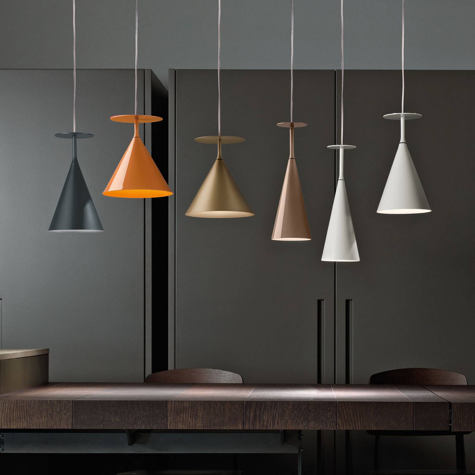 Úzká závěsná lampa ABC Single A – design Roberto Paoli Závěsná lampa ABC Single A je nejmenšího průměru v sérii závěsné lampy ABC, kterou vytvořil italský designér Roberto Paoli v roce 2016. Závěsné světlo je již velmi solitérní a lze ho libovolně kombinovat s dalšími světly v sérii. ABC Single se skládá z kužele, válce a kotouče geometrických tvarů a svým lineárním designem vypadá velmi moderně. Závěsná lampa, která je velmi vhodná například pro osvětlení stolu, ale také způsobí rozruch na jakémkoli jiném místě v obývacím pokoji. Roberto Paoli vytvořil tento fantastický dávkovač světla pro italského výrobce osvětlení Modo Luce, jehož úkolem je dát světlu tvar světla, který přitahuje pozornost a potěší v každé místnosti – soukromé nebo veřejné.