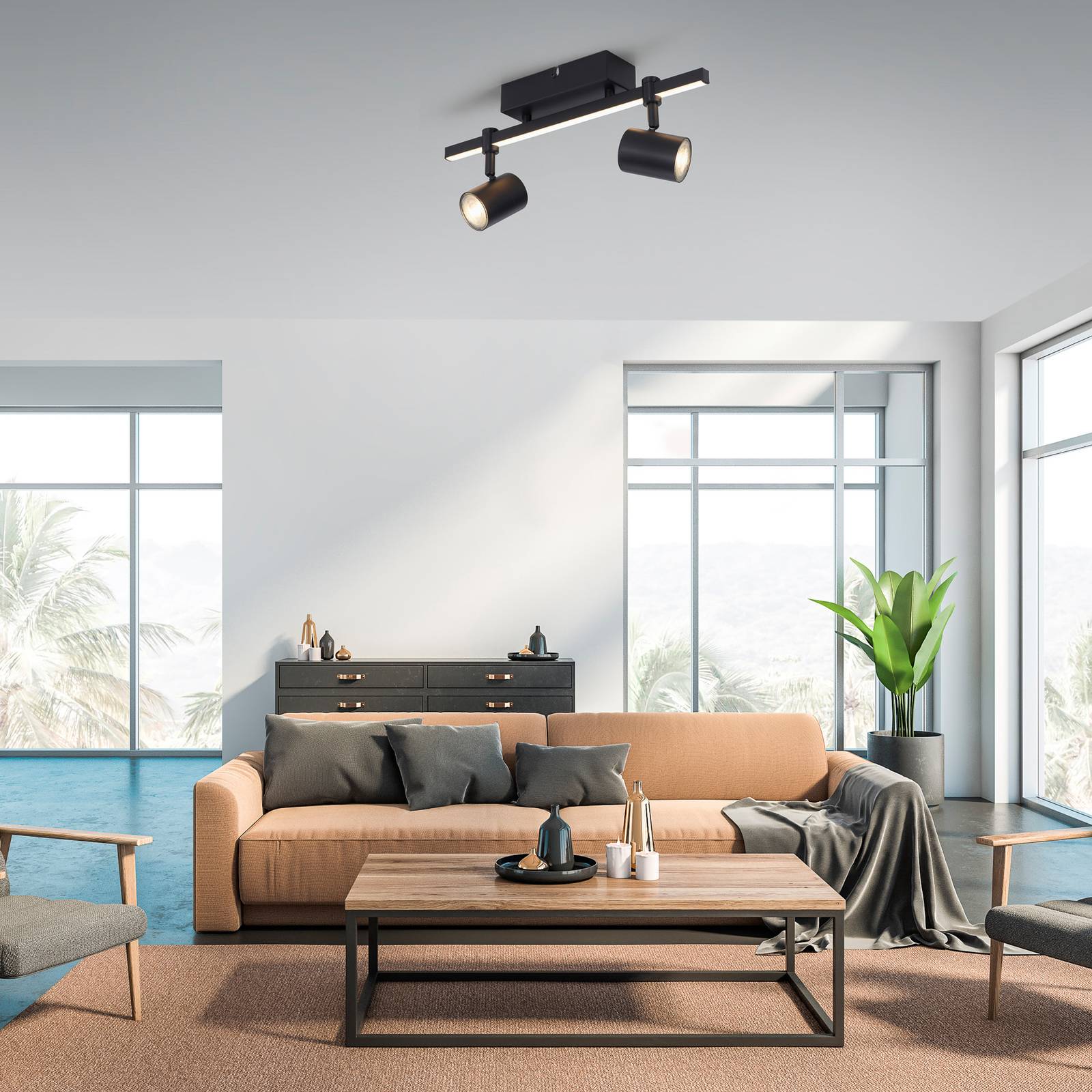 Paul Neuhaus LED stropní bodovka Barik, černá, 2 zdroje, Obývací pokoj / jídelna, železo, plast, GU10, 14W, P: 40 cm, L: 14 cm, K: 16cm