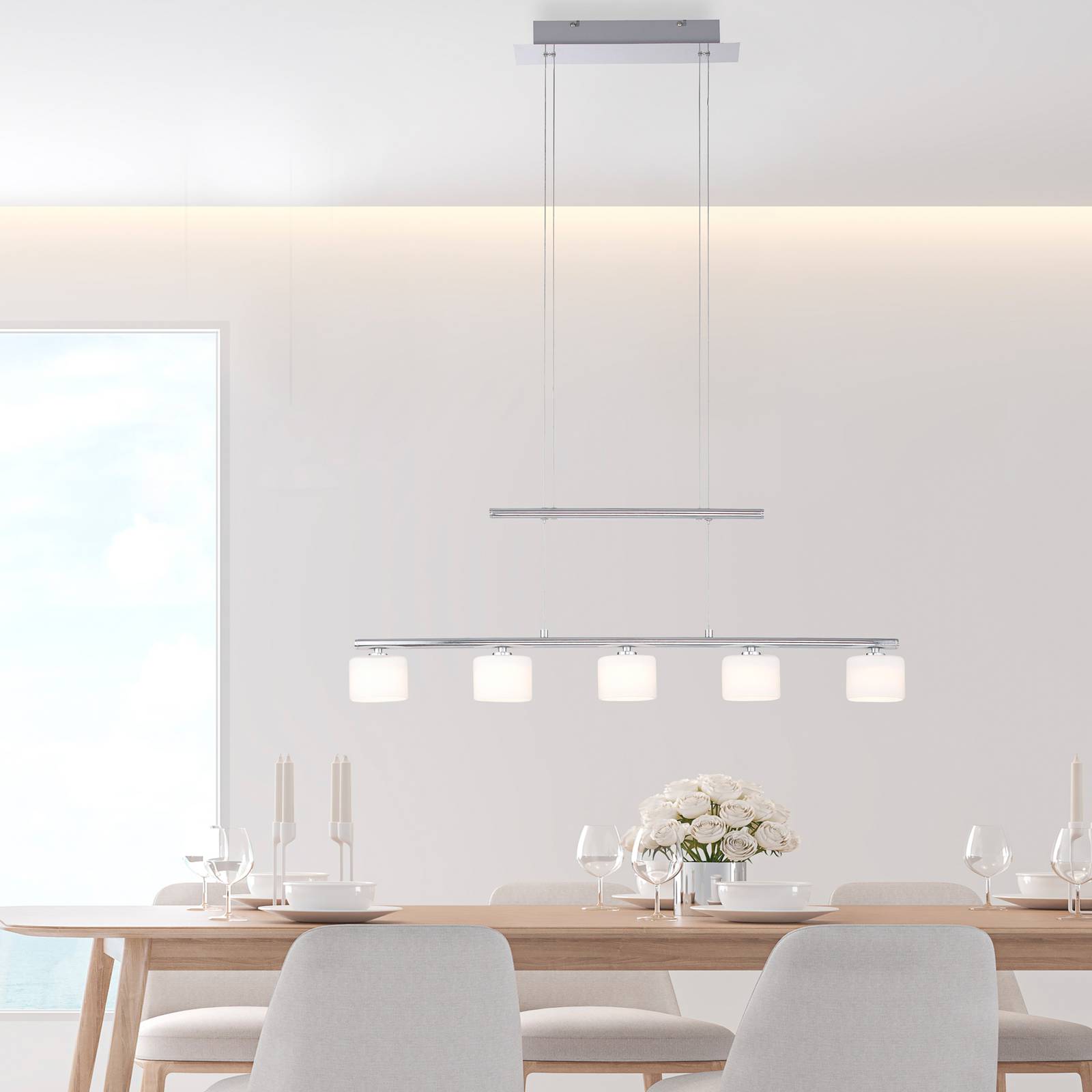 Paul Neuhaus LED závěsné světlo Hydra, pět zdrojů ocelová barva, Obývací pokoj / jídelna, hliník, sklo, 15W, P: 80 cm, L: 7 cm
