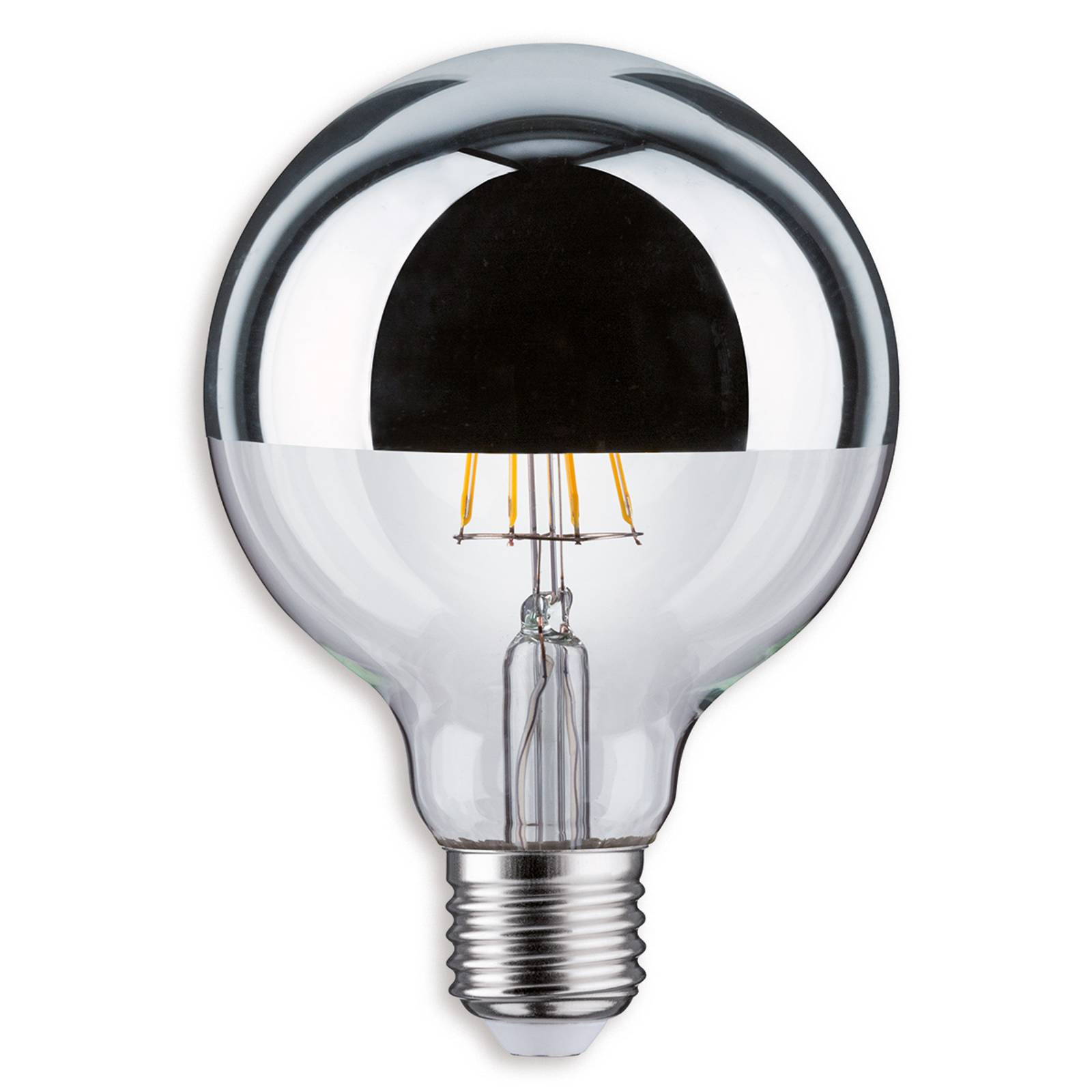Zrcadlová LED žárovka E27 4,8 W G95 s optickým vláknem a teplým bílým světlem Tato zrcadlová LED žárovka je díky svému vzhledu a příjemnému světelnému efektu vizuální ozdobou. Má tvar koule o průměru 9,5 cm a přes čiré sklo jsou vidět LED diody uspořádané jako svítící vlákna. Lampa je ideální pro dekorativní osvětlení a jako nepřímý zdroj světla, například na zrcadlech. Vlastnosti: – příjemná barva světla (teplá bílá, 2 700 K) – není stmívatelné – není vhodné pro celkové osvětlení – pěkný design ve spojení s moderní technologií žárovek LED