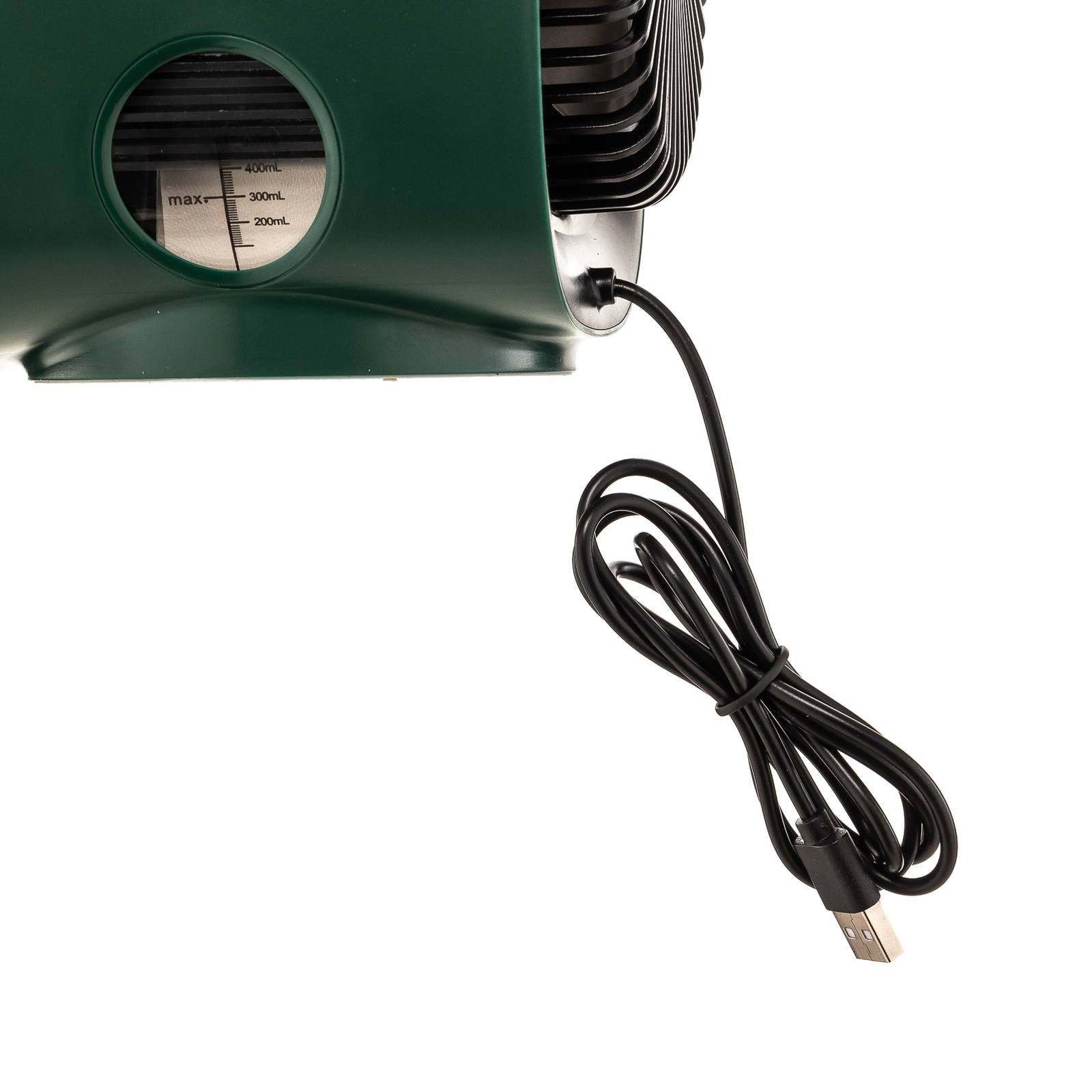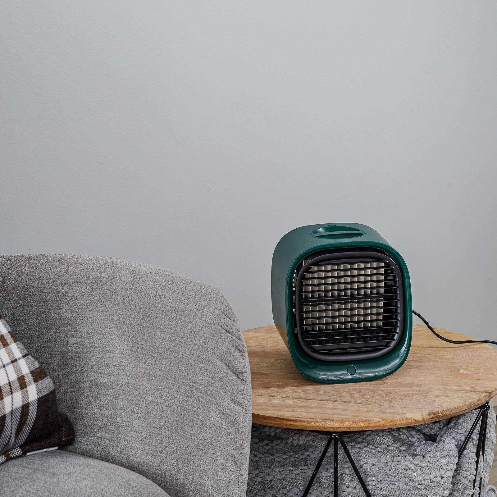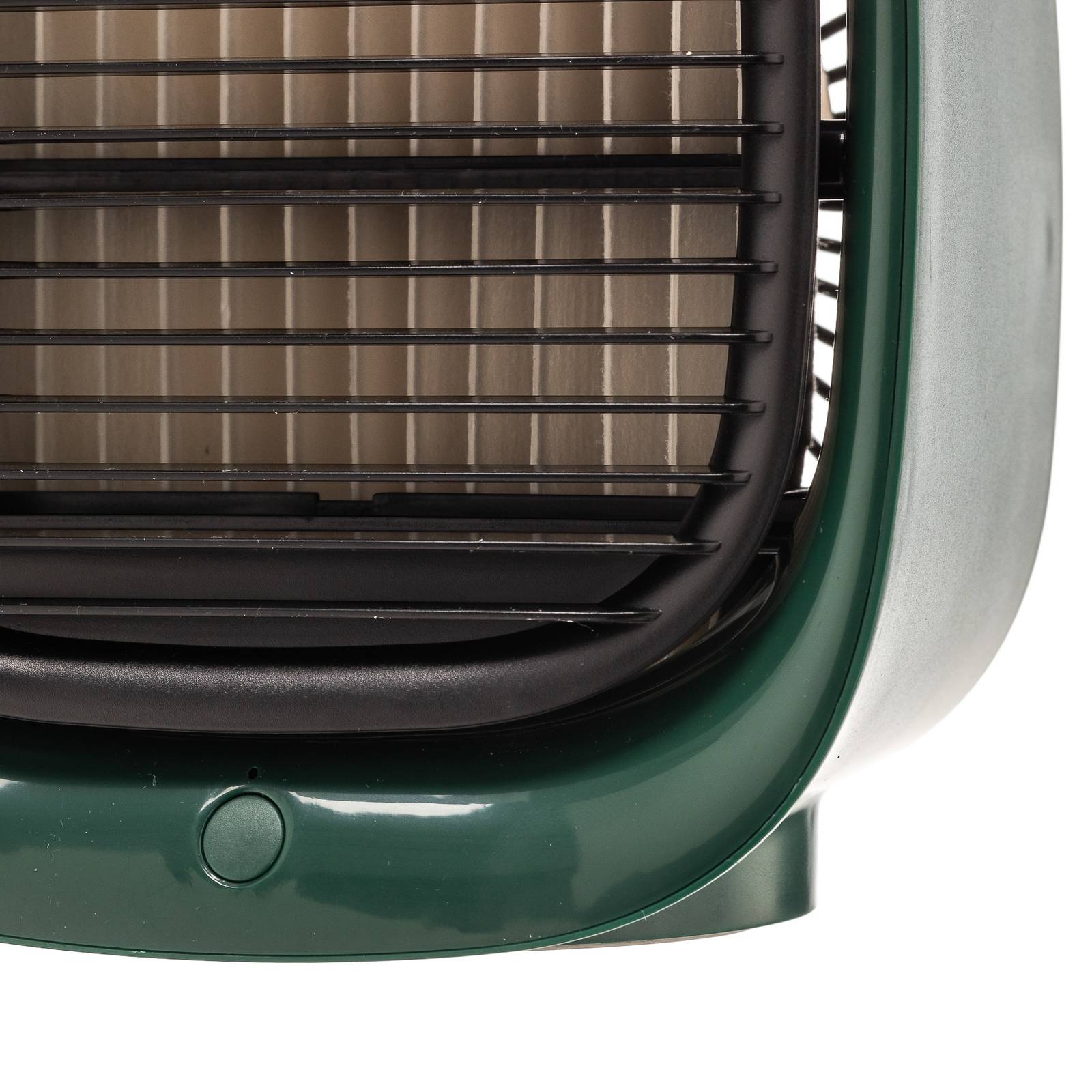 Zelený ochlazovač vzduchu Kest s nádržkou na vodu a USB připojením Tento ochlazovač vzduchu vypadá díky svému kompaktnímu designu a zelenému povrchu moderně a lze jej v obývacím pokoji využít mnoha způsoby. Je integrována nádržka na vodu o objemu 300 ml a odpařováním a cirkulací vzduchu se okolní vzduch při vysokých teplotách poněkud ochlazuje. Funkce Chladič vzduchu Kest zajišťuje příjemně chladnou cirkulaci vzduchu, přičemž je integrována nádržka na vodu a voda se odpařuje. Ventilátor lze ovládat třemi rychlostmi a hladinu vody lze sledovat průzorem. Technická data – 1300/1900/2400 ot/min – 3/5/8 W – 300 ml nádržka na vodu – 3 rychlosti – USB připojení Maximální objemový průtok (Q): 0,03 m³/s Příkon ventilátoru (P): 8 W Provozní hodnota (SV): 1,8 (m³/min)/W (IEC60879:1986) Spotřeba energie v pohotovostním režimu (PSB): 0,1 W Hladina akustického výkonu ventilátoru (LW): 37 dB (A) Maximální rychlost proudění vzduchu (c): 3,5 m/s
