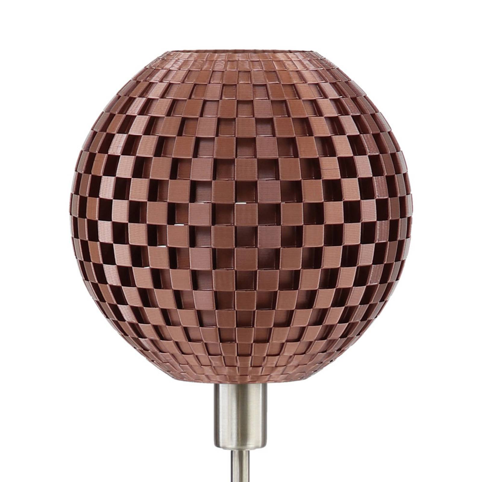 Designový objekt z 3D tiskárny – stolní lampa proutěná koule Kulovitá stolní lampa Flechtwerk Kugel s jedinečným výpletem z přírodního biomateriálu se v obývacím pokoji prezentuje jako vizuální vrchol. Stínidlo je vyrobeno ze 100% netoxického ligninu (bioplast) a kukuřičného škrobu bez obsahu ropy, a je tedy vyrobeno udržitelným a přirozeným způsobem. Díky inovativnímu procesu 3D tisku nevzniká žádný odpad, takže nevzniká žádný zbytečný odpad – takříkajíc „bezodpadová výroba“. Samozřejmě je třeba zmínit také světelný efekt, který je díky speciální výrobě a šachovnicové struktuře mimořádně teplý a harmonický. Světlo je jemně tlumeno jednotlivými plástvemi a vyzařuje rovnoměrně do všech směrů, čímž vytváří příjemný pocit prostoru.