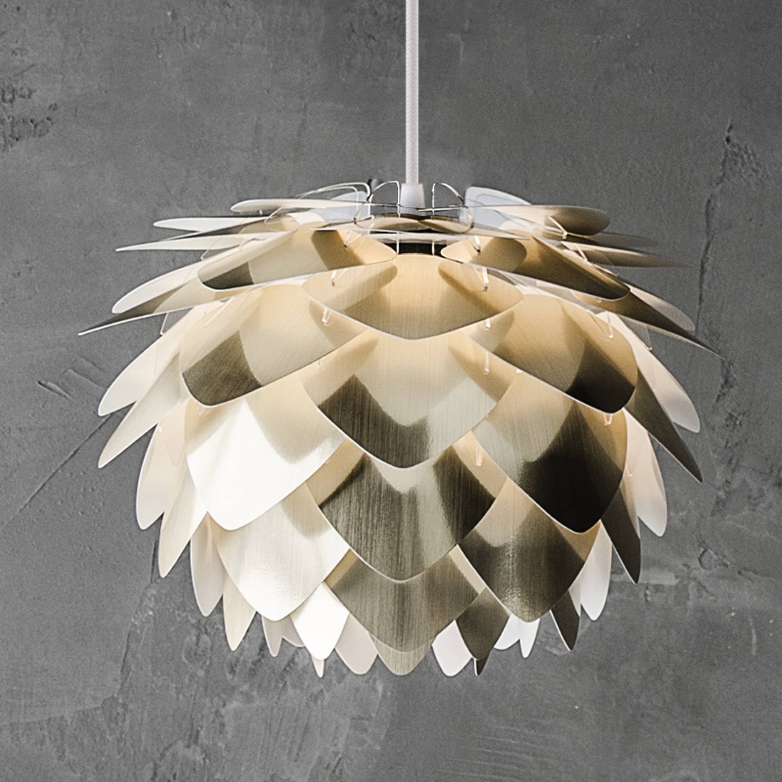 Závěsné světlo Silvia mini v měděném odstínu – světlo, upoutá pozornost za každých okolností Designové závěsné světlo Silvia mini zaujme ze všeho nejvíc neobvyklou podobou stínítka: nepřeberné množství uceleně působících prvků z nerozbitného plastu tu vytváří dohromady útvar, který díky trojhrannému plátkovému tvaru jednotlivých dílů připomíná exotické ovoce. Plátky mají povrchovou úpravu v odstínu kartáčované mědi, což propůjčuje vyzařování světla zvláštní atmosféru navíc, takže výsledkem je působivé osvětlení prostoru. Designérskému týmu UMAGE se podařilo vytvořit moderní klasiku, která ladí s téměř jakýmkoliv stylem bydlení a svým nadčasovým vzhledem odráží přirozenou estetiku skandinávského designu. Kromě toho se při výrobě svítidla Silvia skloubily kromě funkčních, řemeslných a designérských aspektů také ekologické aspekty spolu s udržitelností produktů.