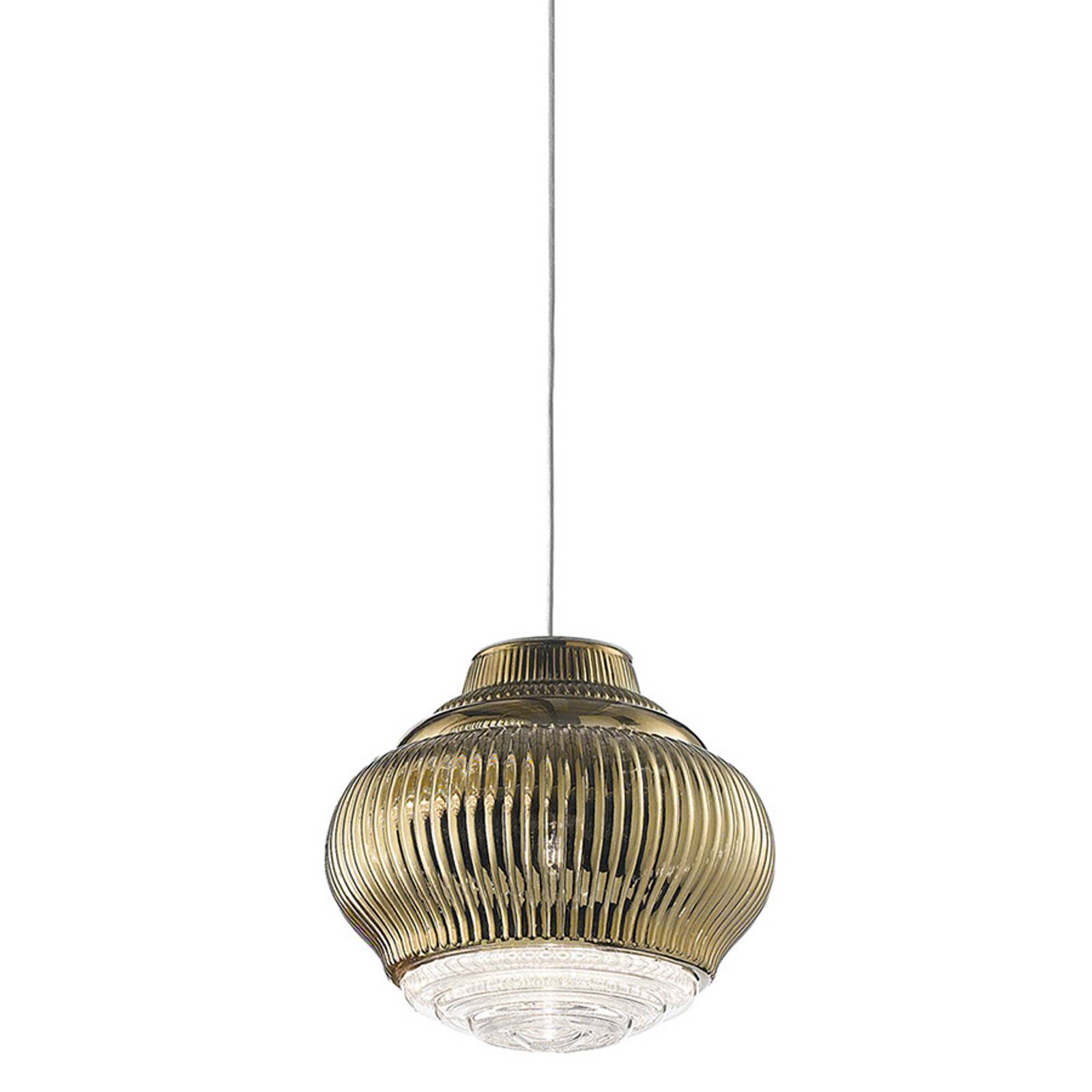 Ailati Závěsné svítidlo Bonnie 130 cm starozlatá metalíza, Obývací pokoj / jídelna, Drážkované sklo, E27, 70W, K: 25cm