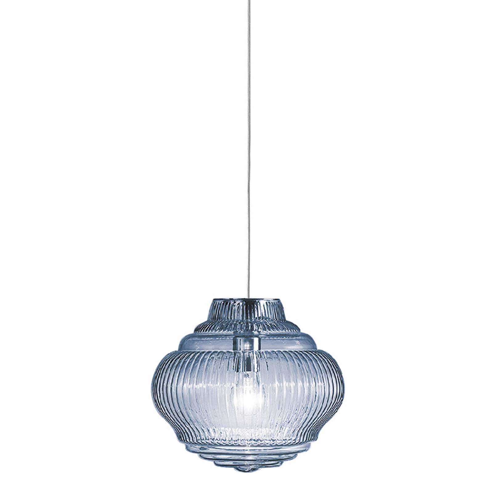Ailati Závěsná lampa Bonnie 130 cm světle modrá, Obývací pokoj / jídelna, Drážkované sklo, E27, 70W, K: 25cm