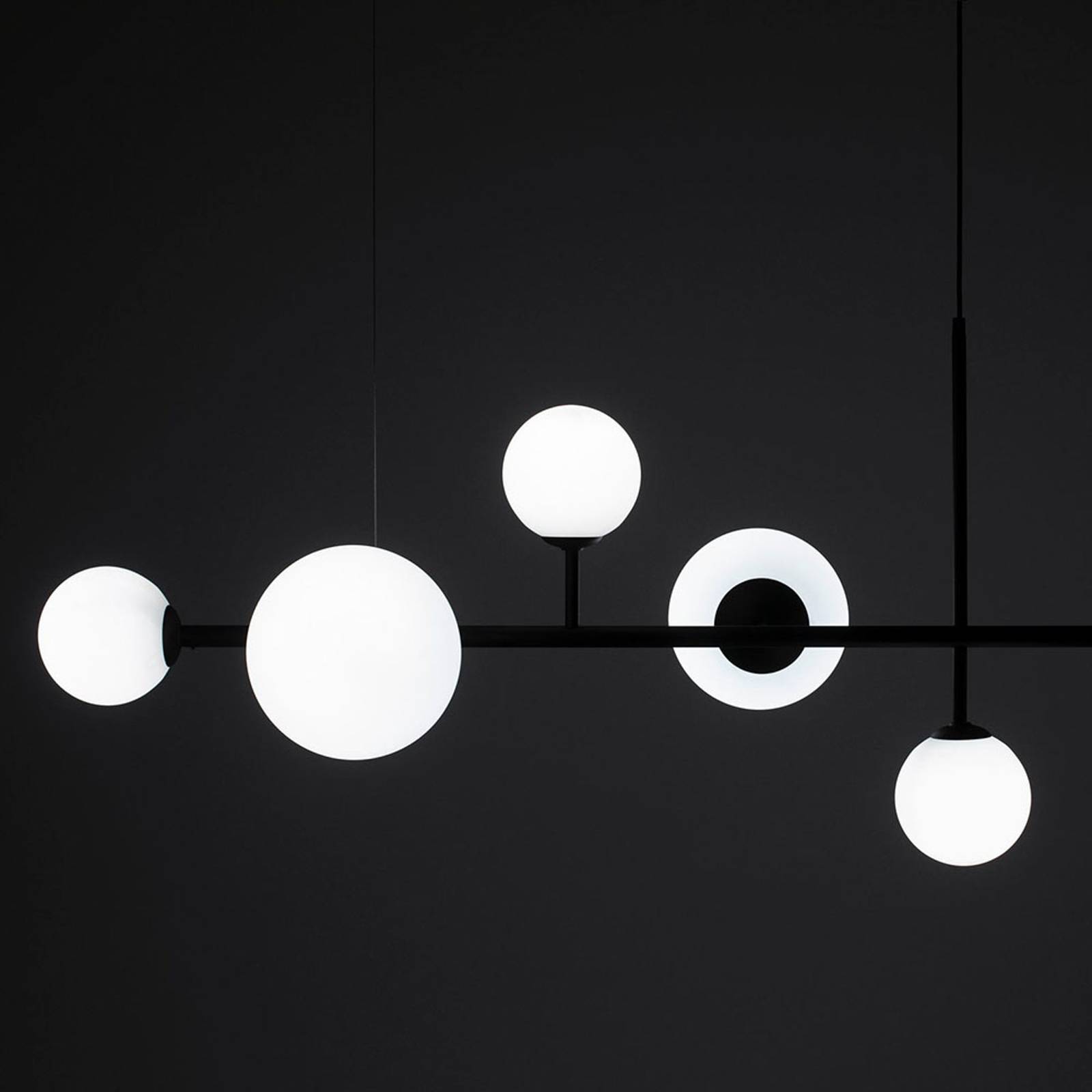 ALDEX Závěsné světlo Dione, šest zdrojů, černá, Obývací pokoj / jídelna, kov, sklo, P: 129 cm, L: 60 cm, K: 56cm