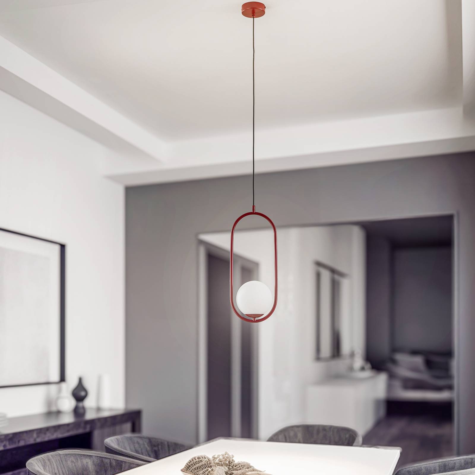 ALDEX Závěsné světlo Dione, 1 zdroj, červená/bílá, Obývací pokoj / jídelna, kov, sklo, E14, 10W, P: 18.5 cm, L: 14 cm, K: 43cm