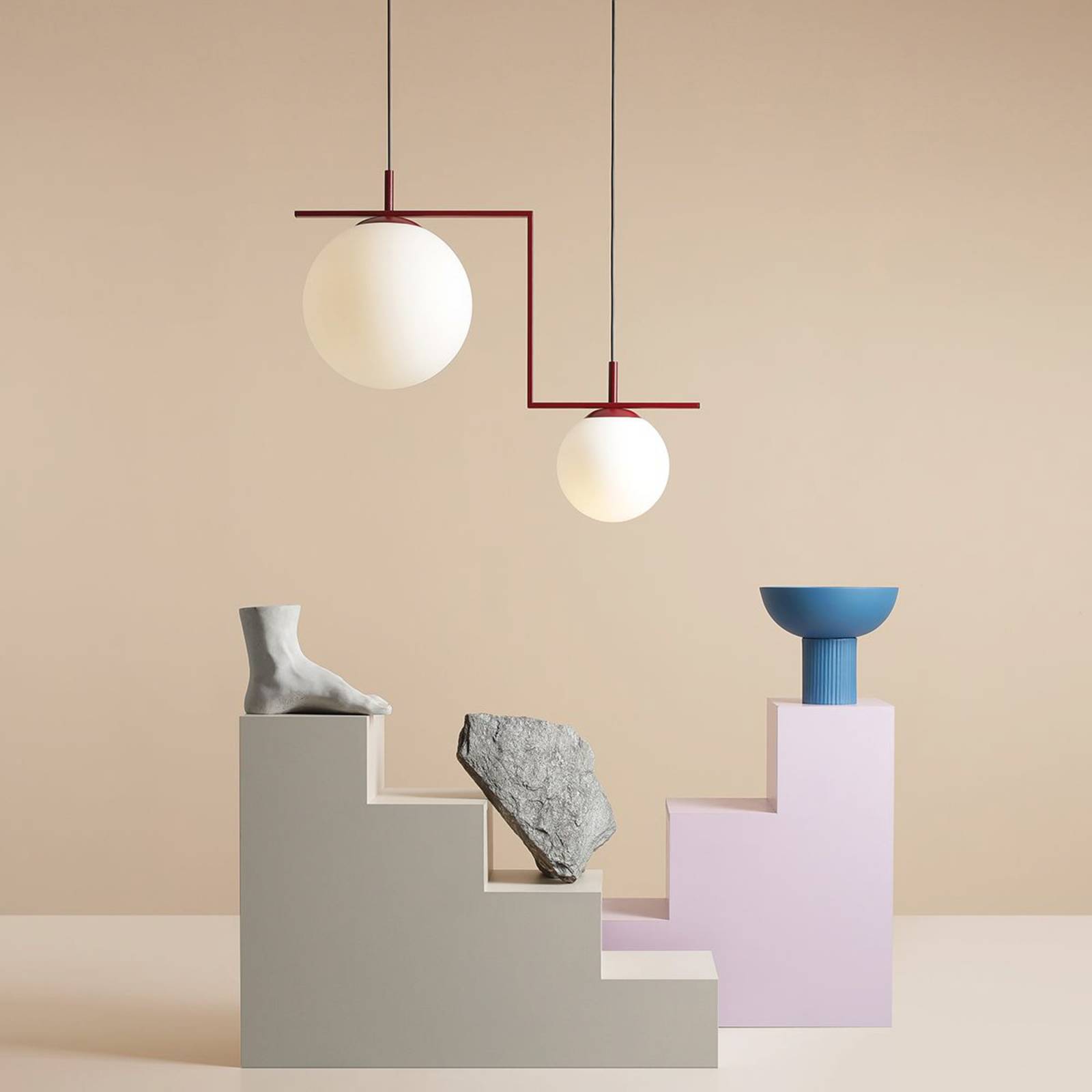 ALDEX Závěsné světlo Zac opálová/vínově červená 2 zdroje, Obývací pokoj / jídelna, kov, sklo, E27, 15W, P: 72 cm, L: 30 cm, K: 60cm