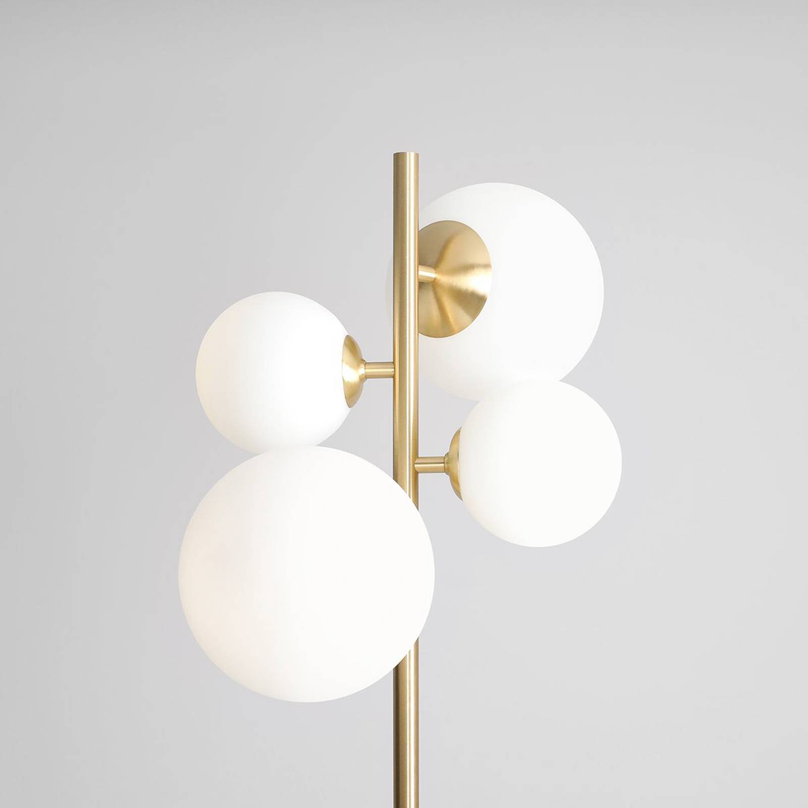 ALDEX Stojací lampa Joel, mosaz/bílá, 4 zdroje, Obývací pokoj / jídelna, kov, sklo, E27, P: 48 cm, L: 35 cm, K: 161cm