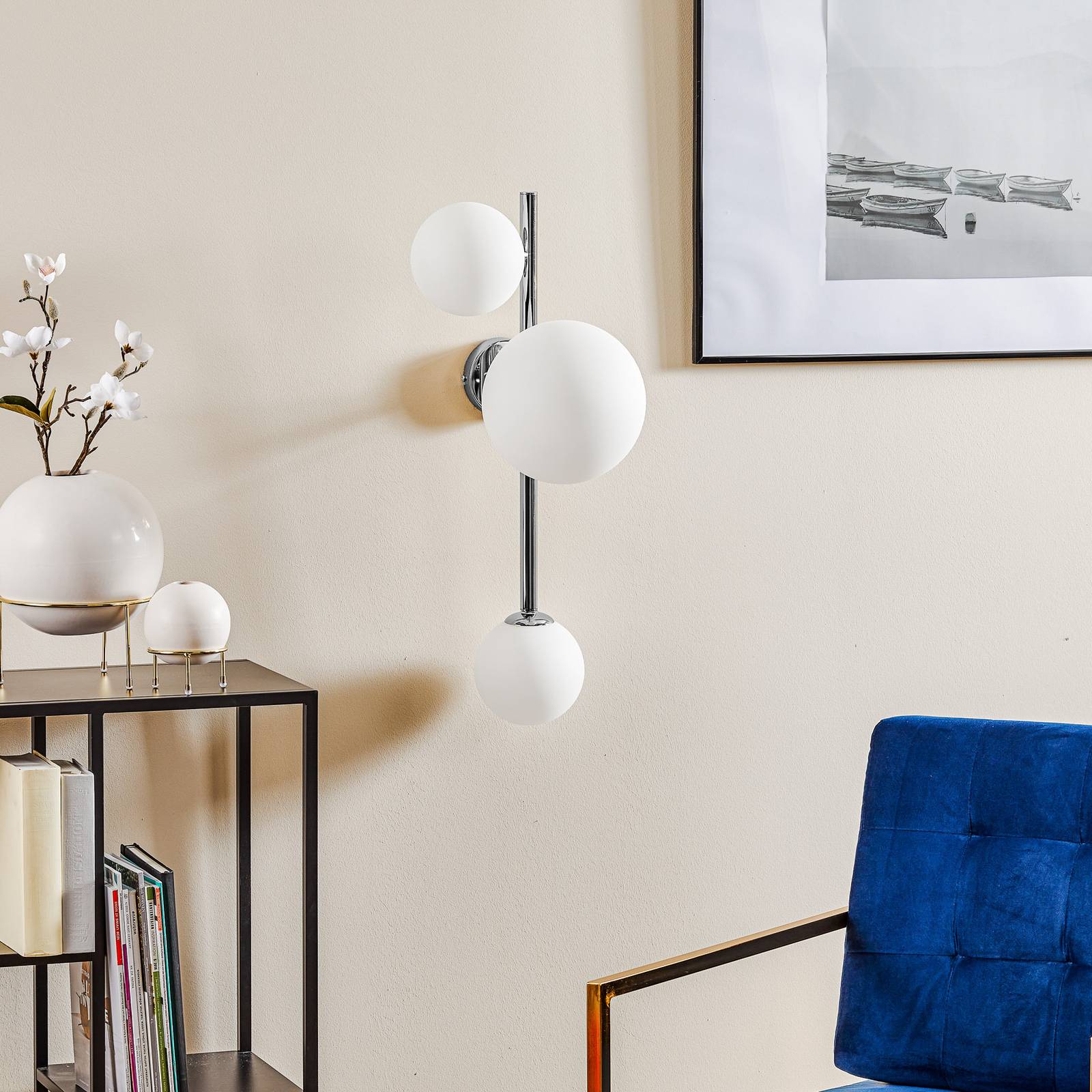 ALDEX Nástěnné světlo Dione, tři zdroje, chrom, Obývací pokoj / jídelna, kov, sklo, E27, 60W, L: 46 cm, K: 66cm