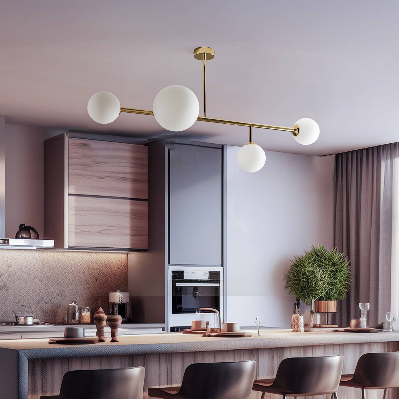 ALDEX Stropní světlo Dione, 4 zdroje, zlatá, Obývací pokoj / jídelna, kov, sklo, P: 117 cm, L: 32 cm, K: 58cm