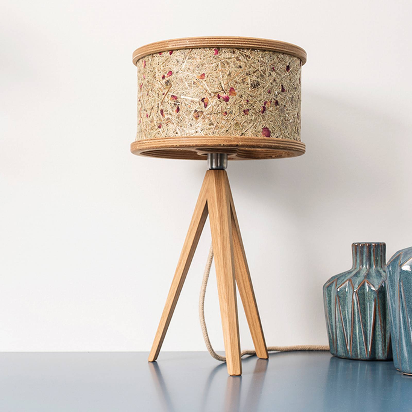 Almut von Wildheim ALMUT 2610 stolní lampa, čisté seno, Obývací pokoj / jídelna, dubové dřevo, čisté seno, E14, 28W, K: 44.5cm