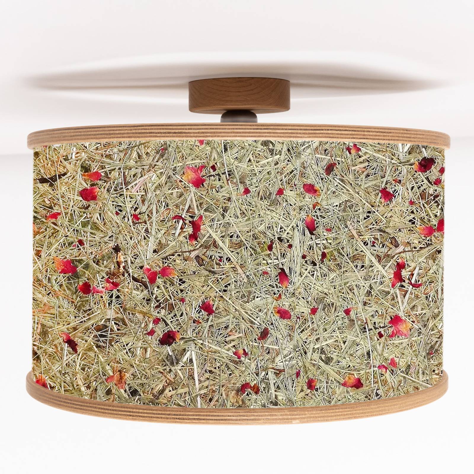 Almut von Wildheim ALMUT 2610 stropní světlo Ø25cm seno/červené květy, Obývací pokoj / jídelna, dubové dřevo, seno s okvětními lístky červených růží, E14, 28W, K: 20.7cm
