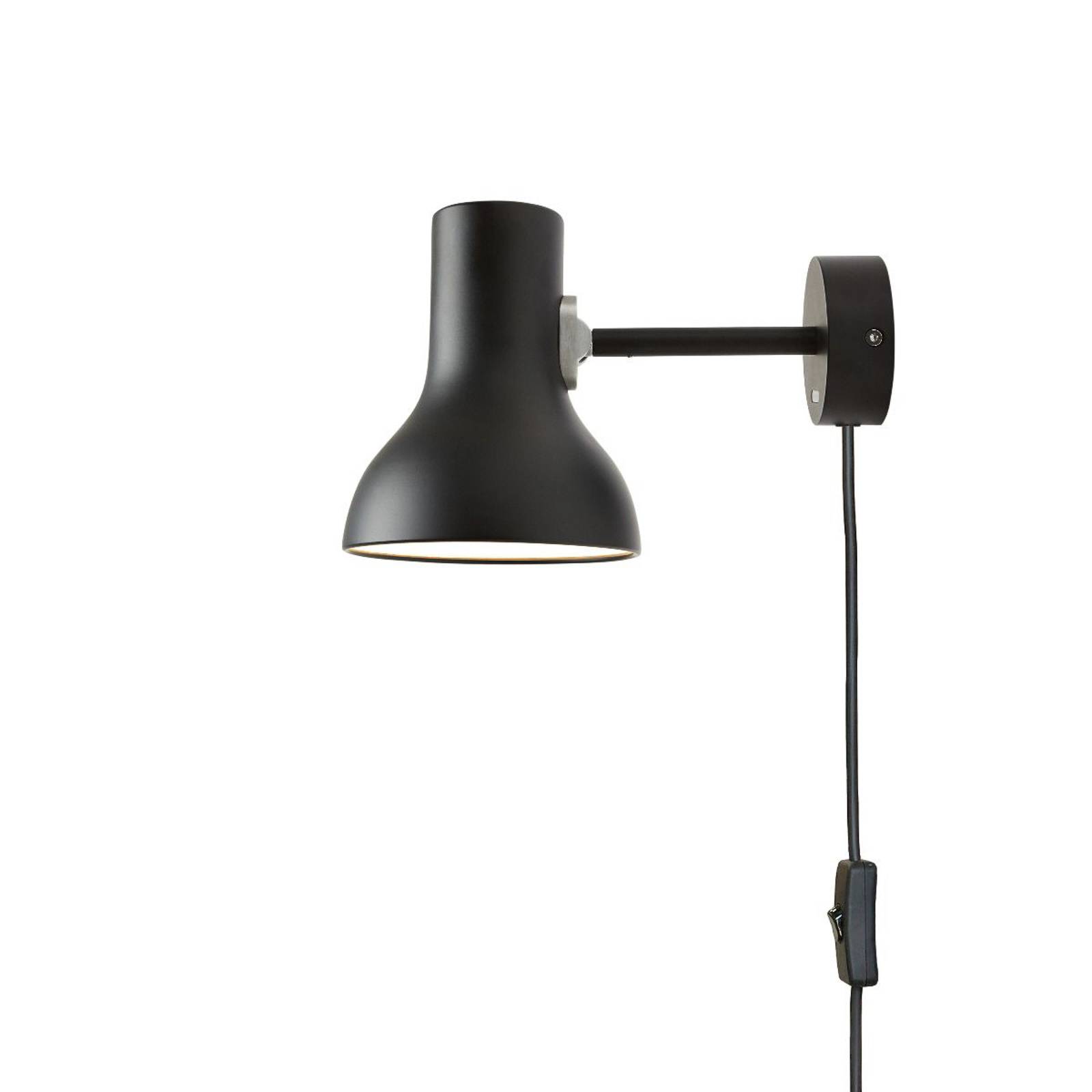 Anglepoise Type 75 Mini nástěnné, zásuvka, černé, Obývací pokoj / jídelna, hliník, E27, 10W, L: 13 cm, K: 15cm