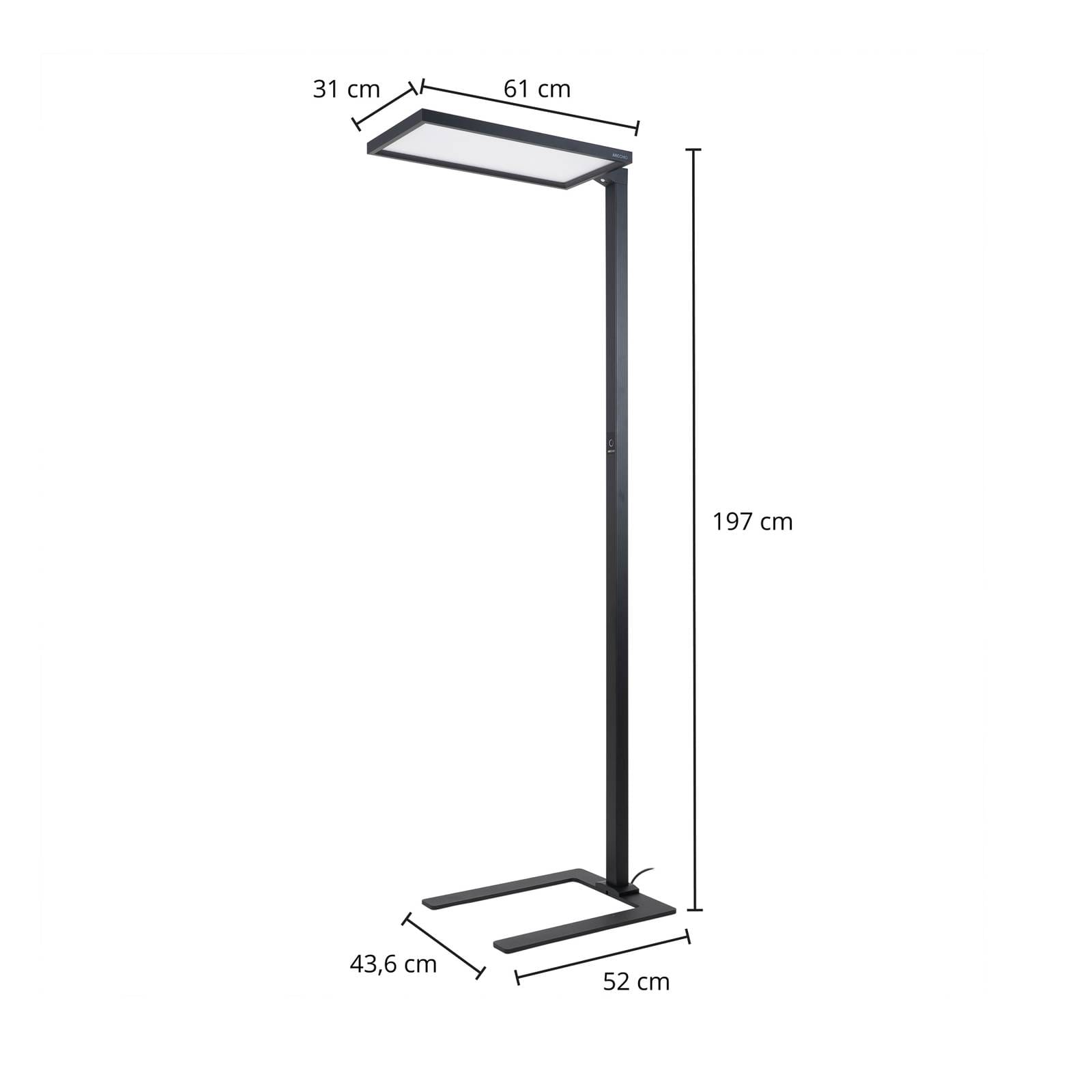 Arcchio Nelus LED stojací lampa, senzor, černá, Pracovna / kancelář, ocel, hliník, 74W, P: 61 cm, L: 31 cm, K: 197cm