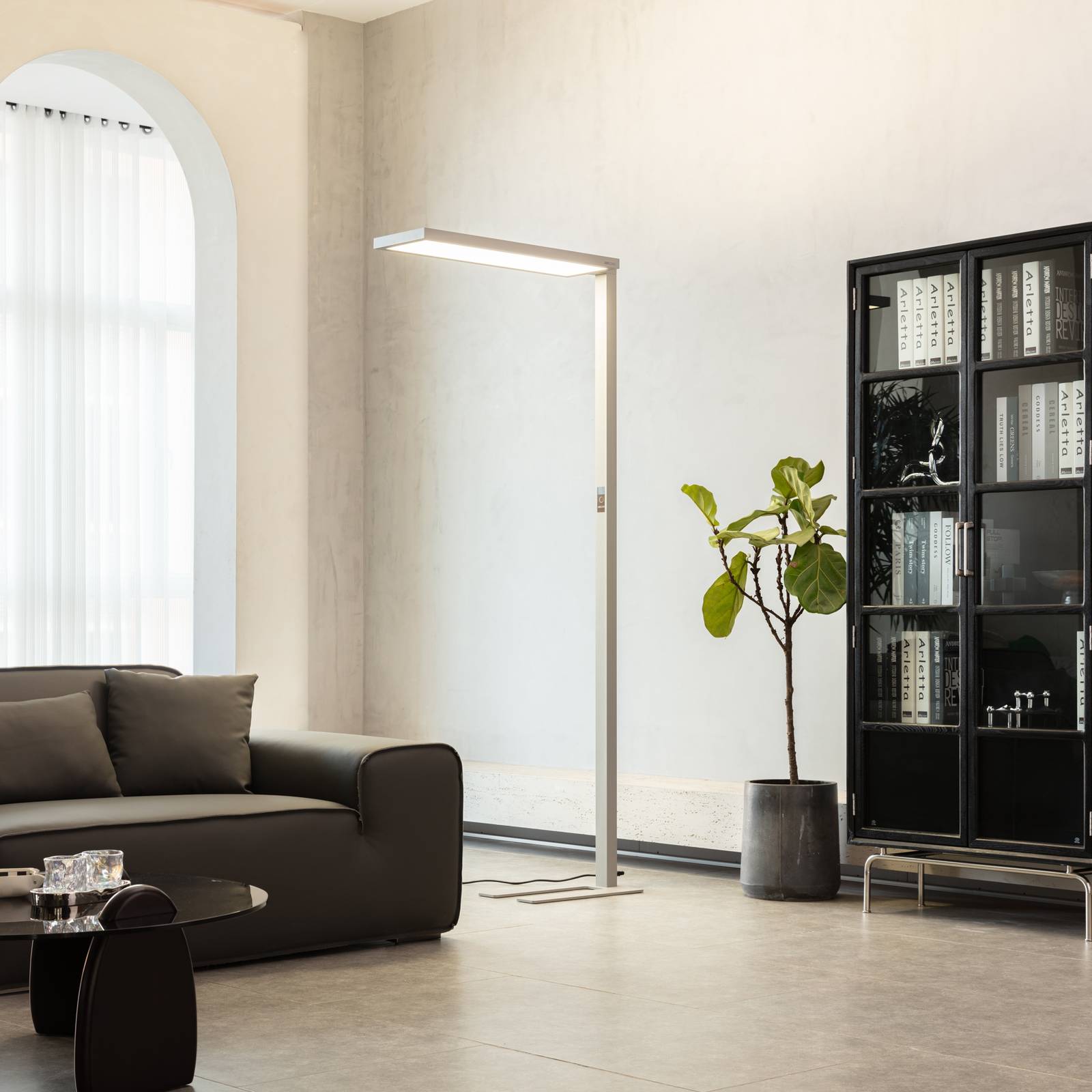 Arcchio Finix LED stojací lampa stříbrná 80 W stmívatelná, Pracovna / kancelář, Hliník, plast, 80W, K: 196cm