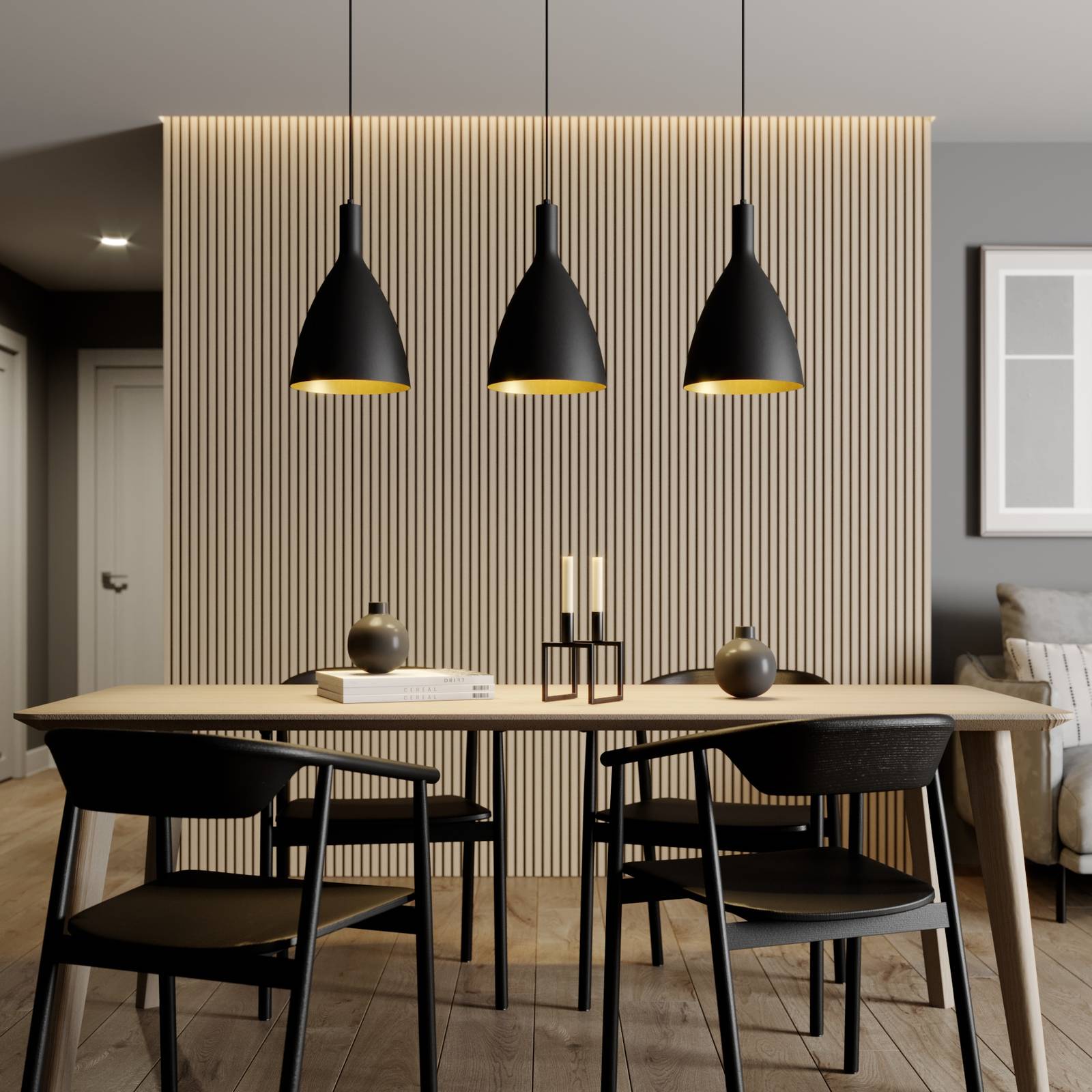 Arcchio Arthuria závěsné světlo, 3ž. dlouhé černé, Kuchyň, ocel, E27, 60W, P: 90 cm, L: 28 cm