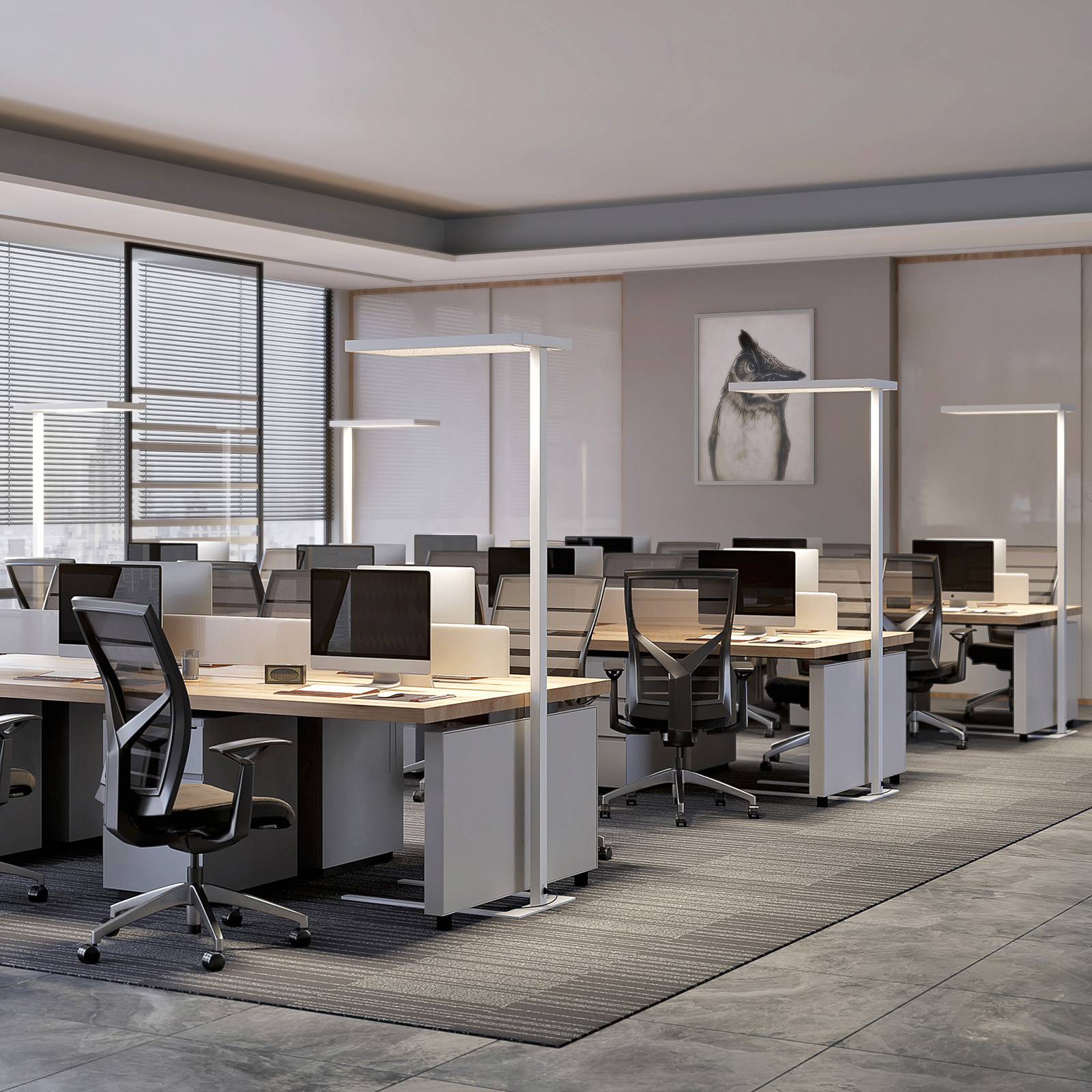 Arcchio Kancelářská LED stojací lampa Nora, snímač, 50 W, Pracovna / kancelář, hliník, plast, 50W, P: 60 cm, L: 30 cm, K: 195cm