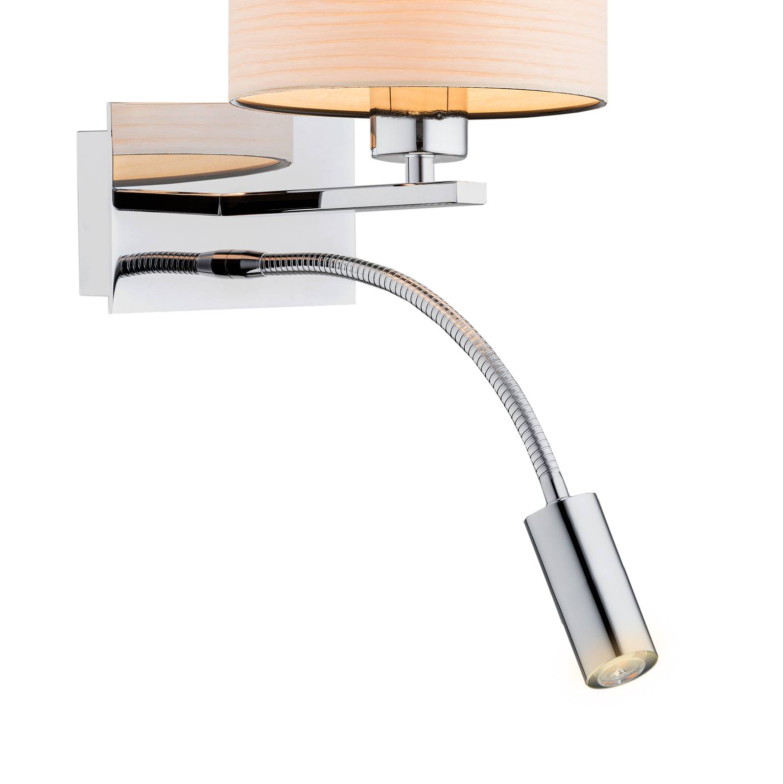 Argon Nástěnné světlo Harry, kulaté, chrom/světlé dřevo, Obývací pokoj / jídelna, ocel pochromovaná, dřevo, E27, 15W, L: 16 cm