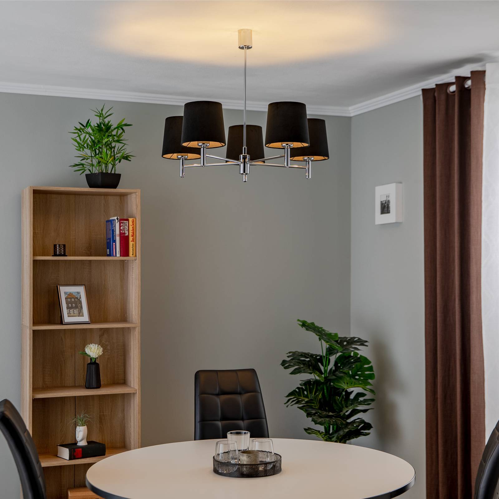 Argon Závěsné světlo Bono, pět zdrojů, chrom/černá, Obývací pokoj / jídelna, velur, ocel, E27, 15W, K: 45cm