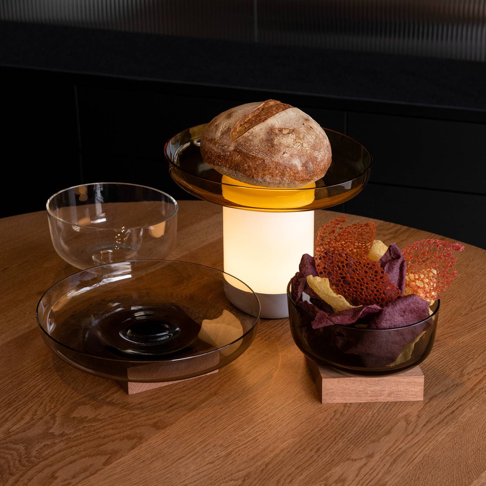Artemide Bontà LED stolní lampa, žlutá miska, Obývací pokoj / jídelna, ručně vyráběné sklo, plast, 2.4W, K: 21.4cm