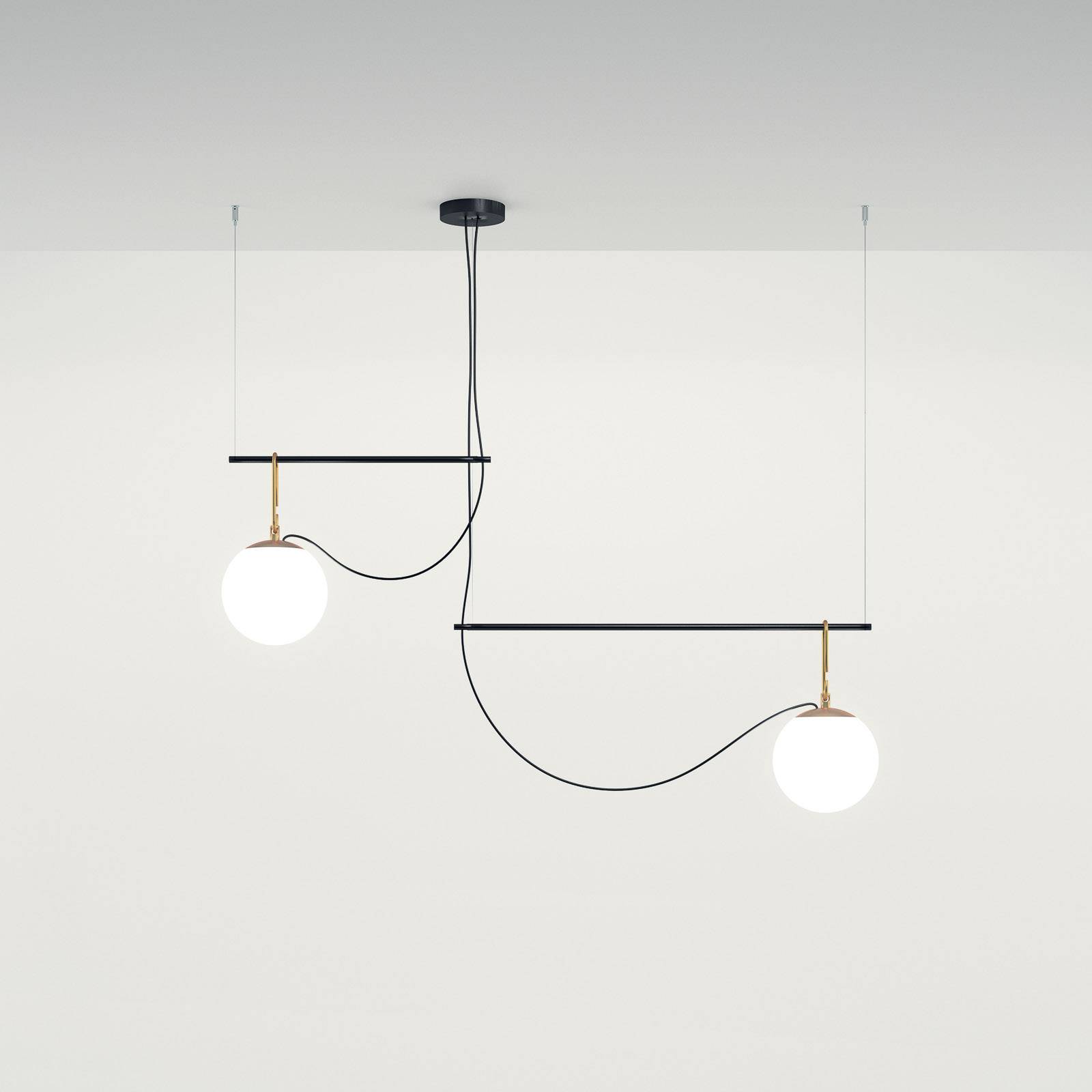 Artemide Skleněná závěsná lampa nh S3 2, dvoubarevná, Obývací pokoj / jídelna, Sklo, mosaz, E27, 15W, P: 134 cm