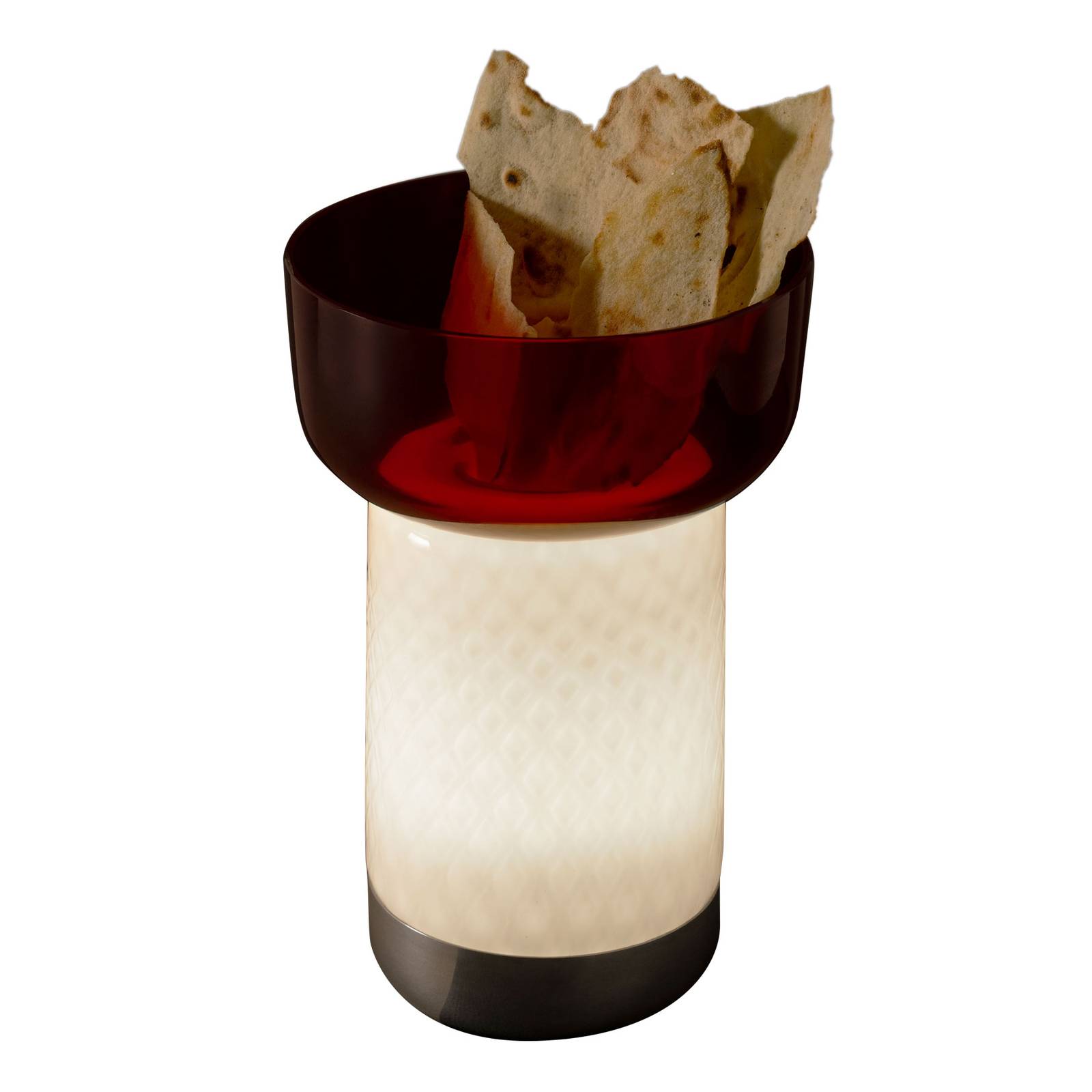 Artemide Bontà LED stolní lampa, červená miska, Obývací pokoj / jídelna, ručně vyráběné sklo, plast, 2.4W, K: 26.4cm