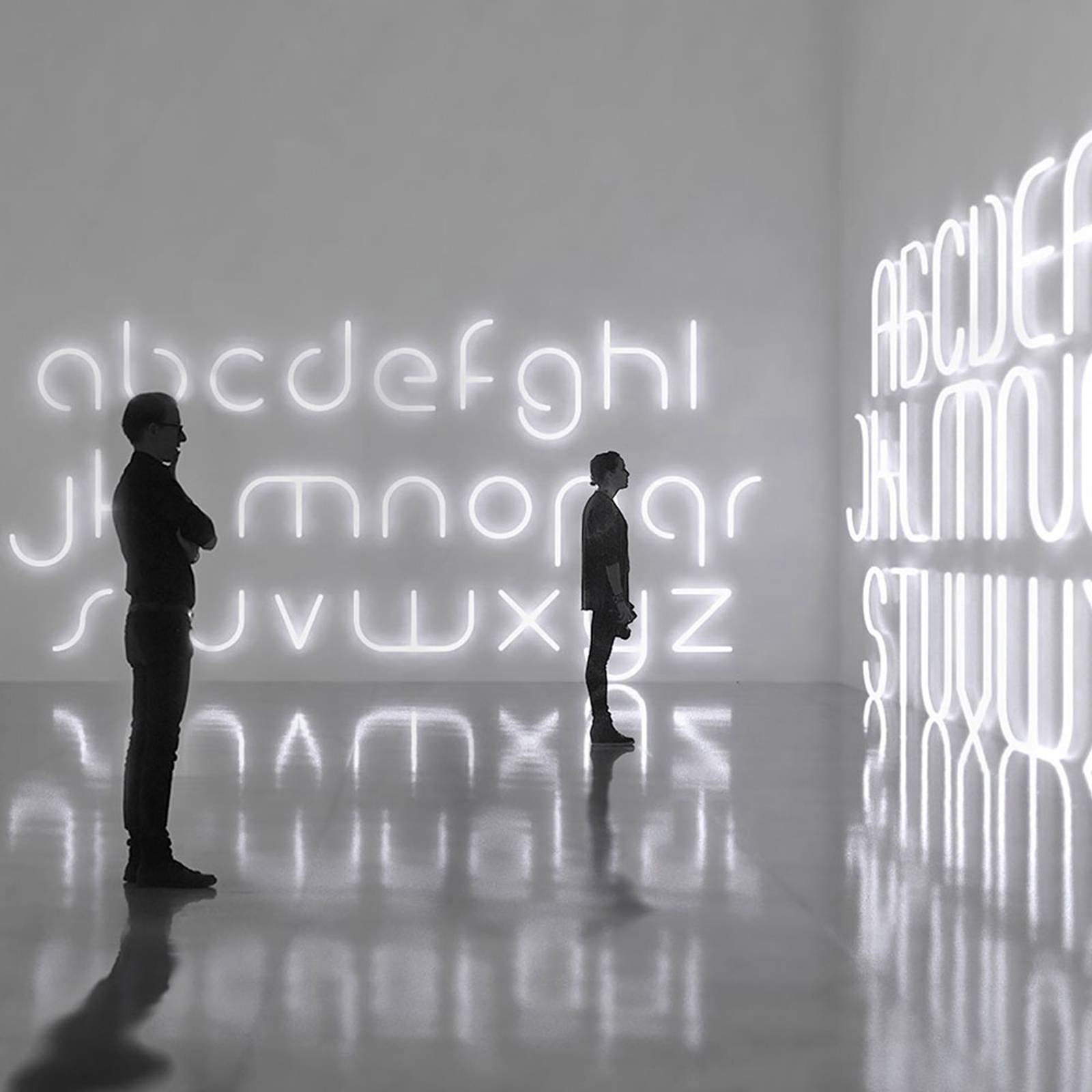 Artemide Alphabet of Light malé písmeno e, Obývací pokoj / jídelna, metakrylát, hliník, 20W, L: 65 cm, K: 65cm