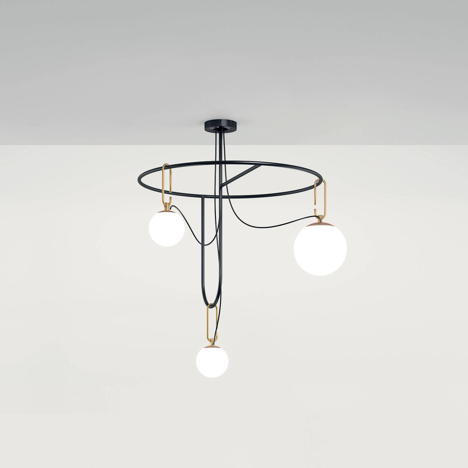 Artemide Skleněná závěsná lampa nh S4, třísvítidlo, Obývací pokoj / jídelna, Sklo, mosaz, P: 76.5 cm, L: 86.7 cm, K: 107.5cm