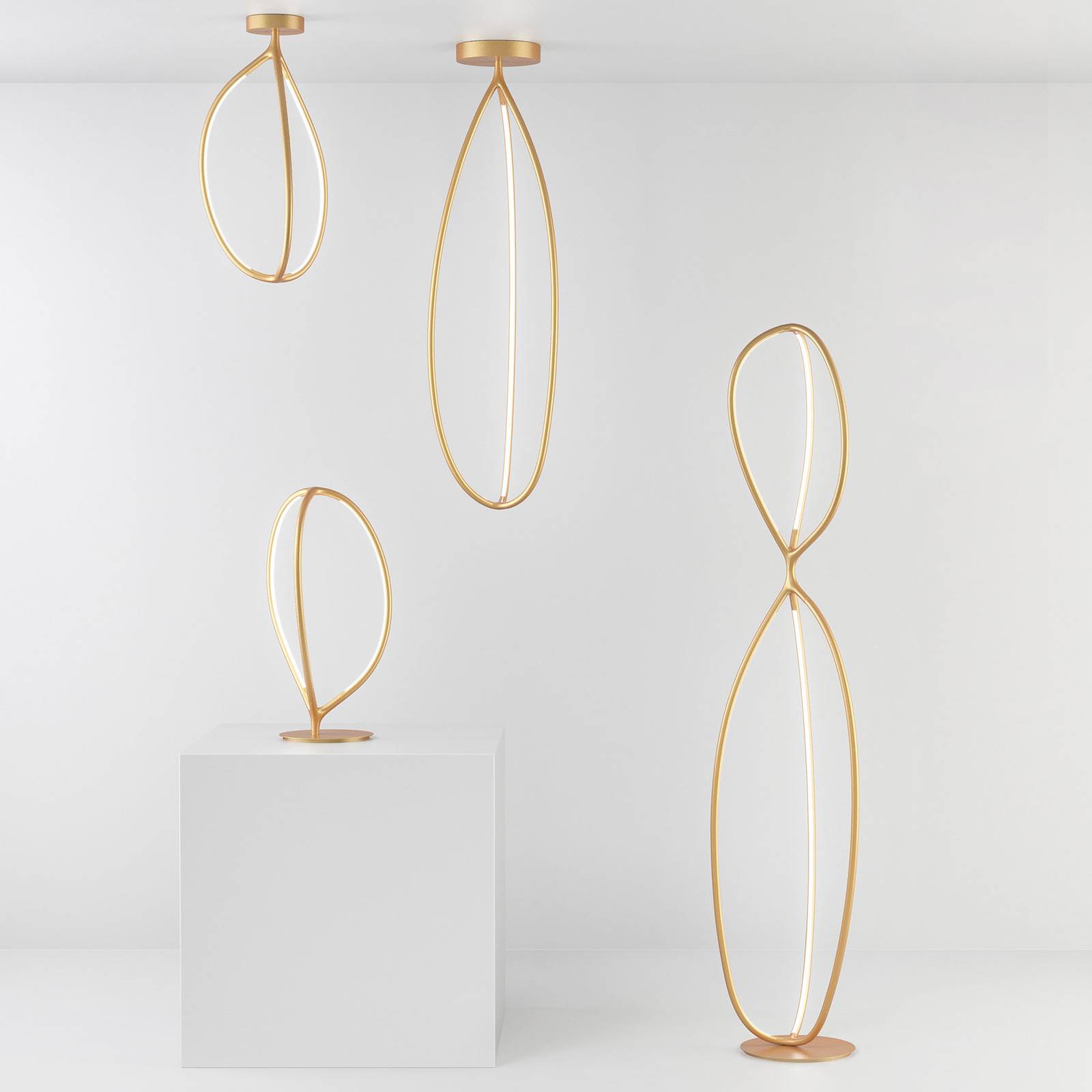 Artemide Arrival LED stolní lampa mosaz, Obývací pokoj / jídelna, hliník, silikon, 15W, P: 30.8 cm, L: 30.6 cm, K: 65.9cm