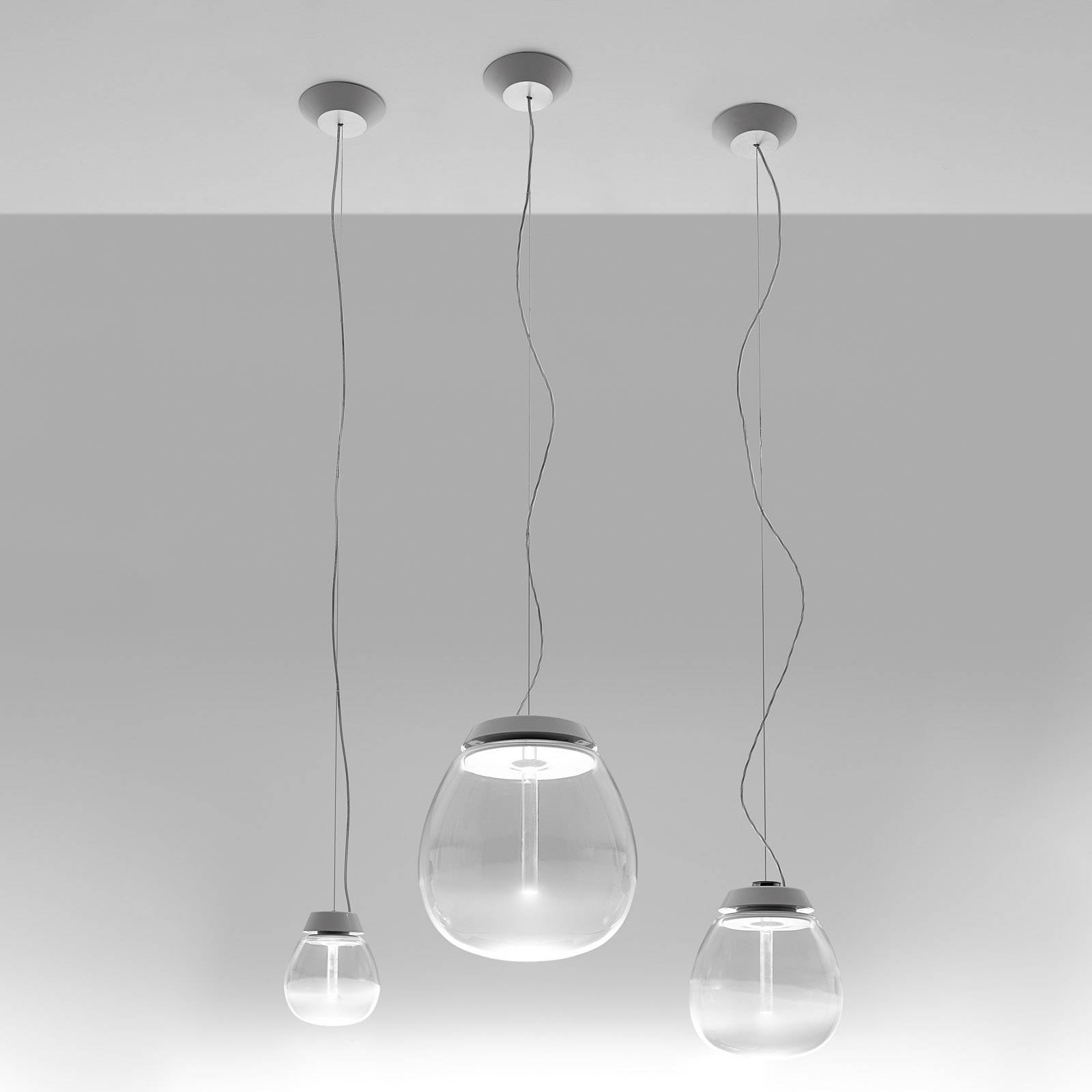 Artemide Závěsné svítidlo Empatia LED, Ø 26 cm, Obývací pokoj / jídelna, Sklo, metakrylát, hliník, 16W, K: 29cm