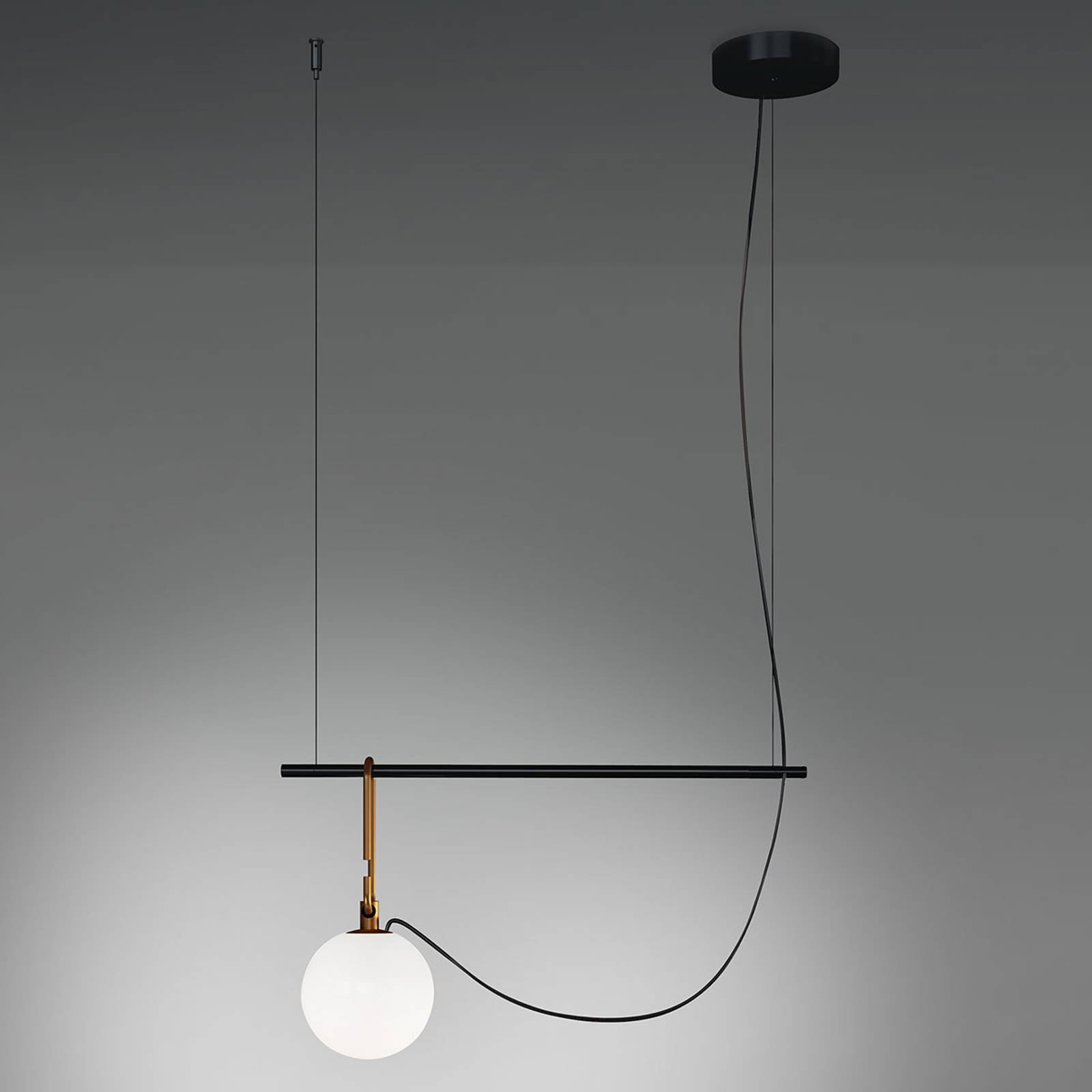 Artemide nh S1 14 závěsné světlo 55cm koule Ø 14cm, Obývací pokoj / jídelna, sklo, mosaz, E14, 5W, P: 55 cm, L: 14 cm, K: 32.2cm