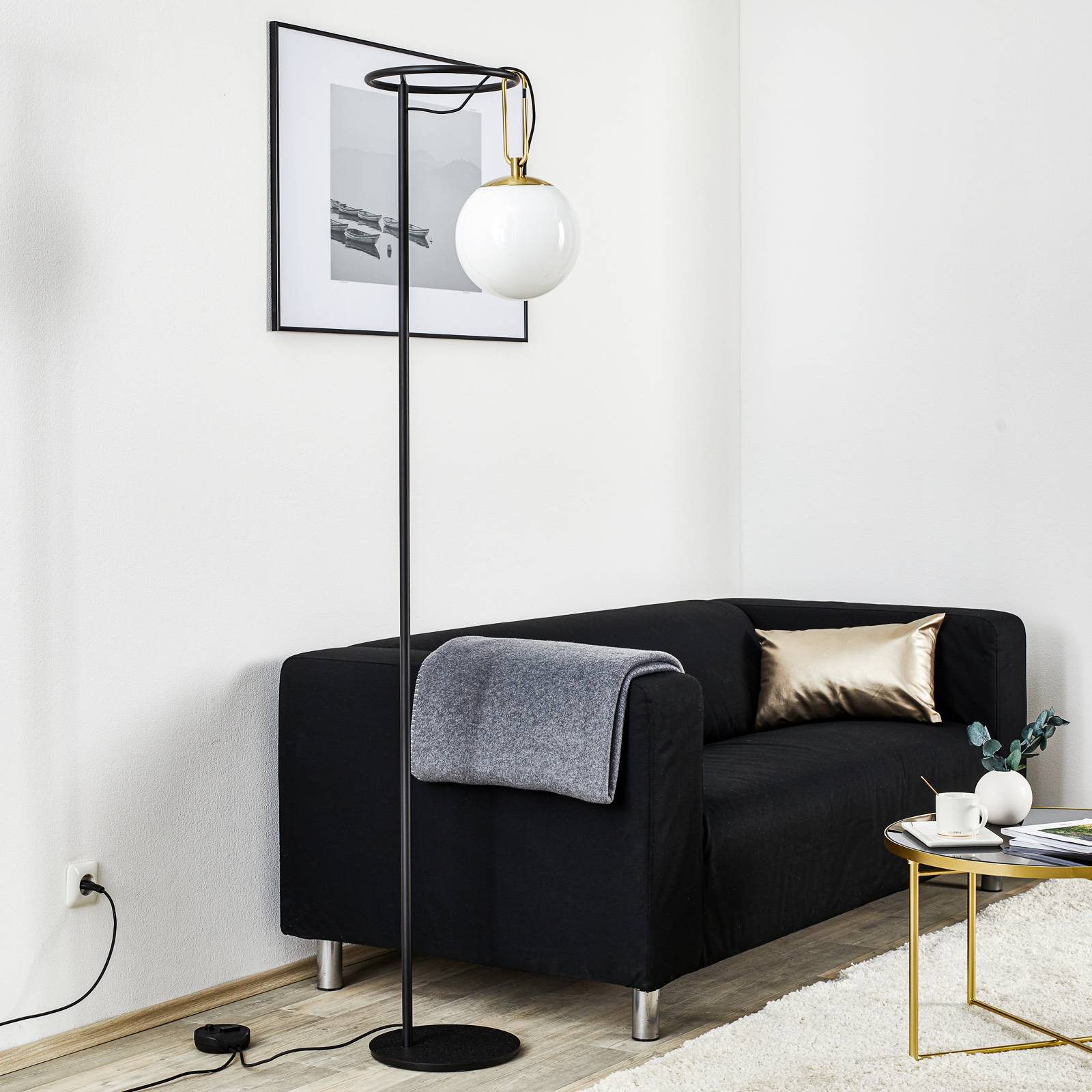 Artemide Stojací lampa nh se stmívačem, Obývací pokoj / jídelna, Sklo, mosaz, E27, 15W, K: 171.8cm