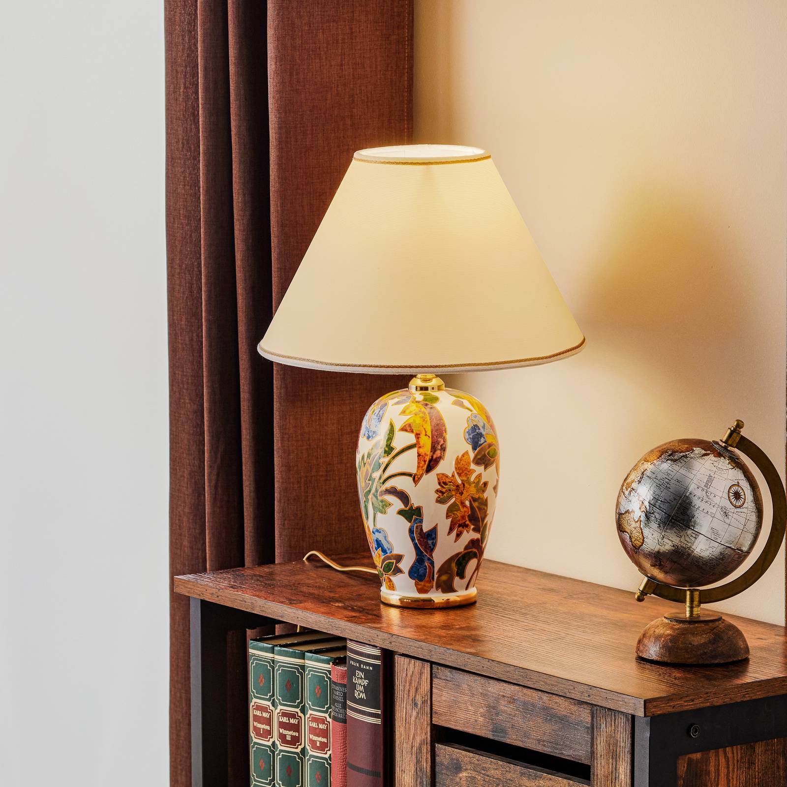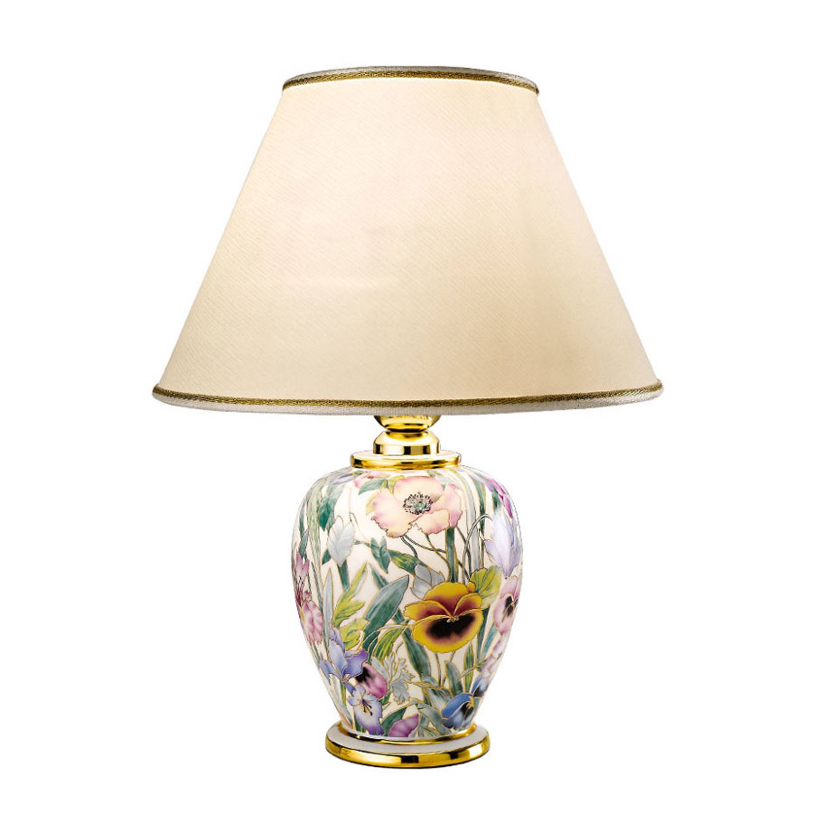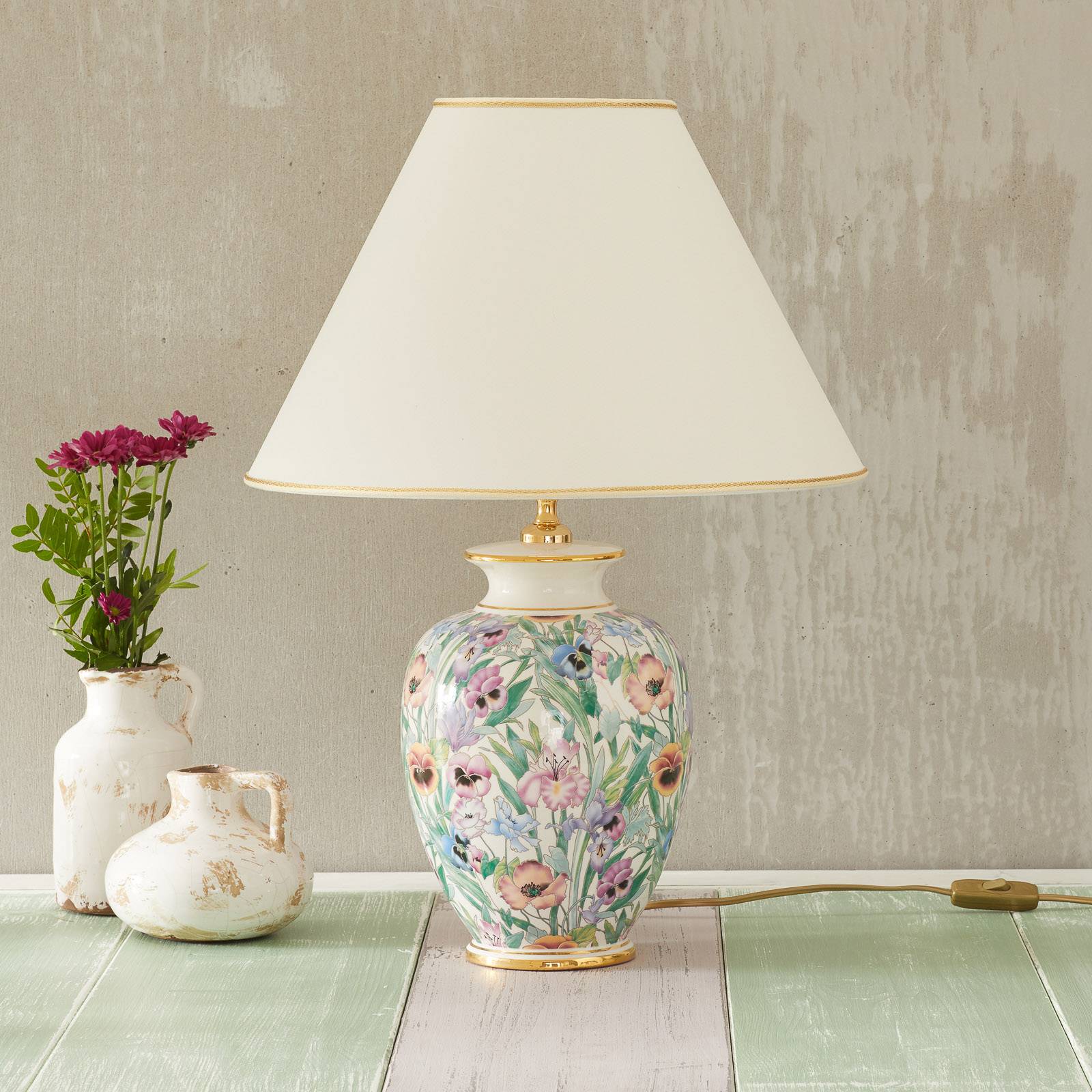 austrolux Stolní lampa Giardino Perla, ruční malba, Ø 30 cm, Obývací pokoj / jídelna, keramika, textil, E27, 100W, K: 43cm