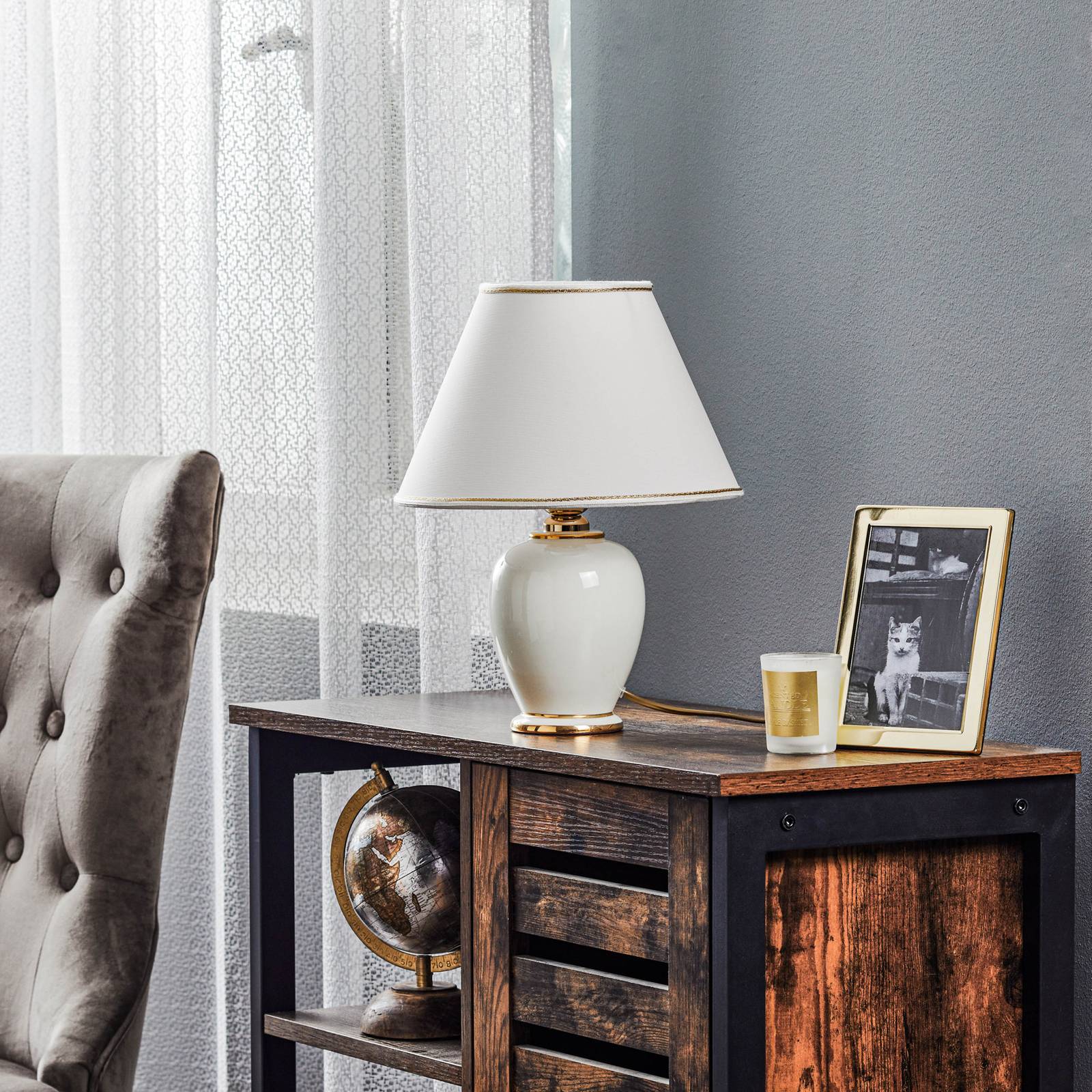 austrolux Stolní lampa Austrolux Giardino Avorio, 25 cm, keramika, bílá, Obývací pokoj / jídelna, Keramika, textil, E27, 60W, K: 34cm