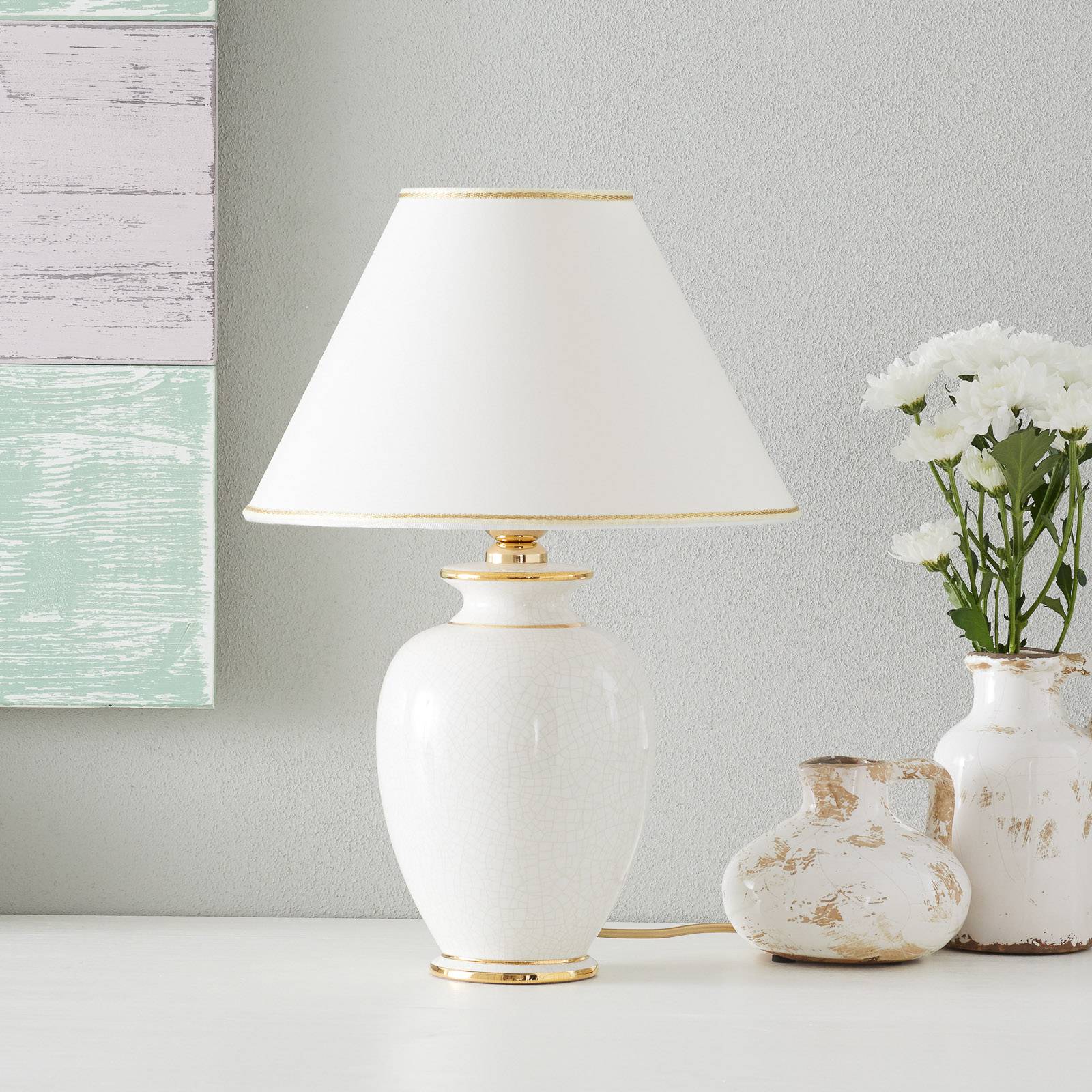 austrolux KOLARZ Giardino Craclee stolní lampa krémová 30 cm, Obývací pokoj / jídelna, keramika, látka, E27, 100W, K: 43cm