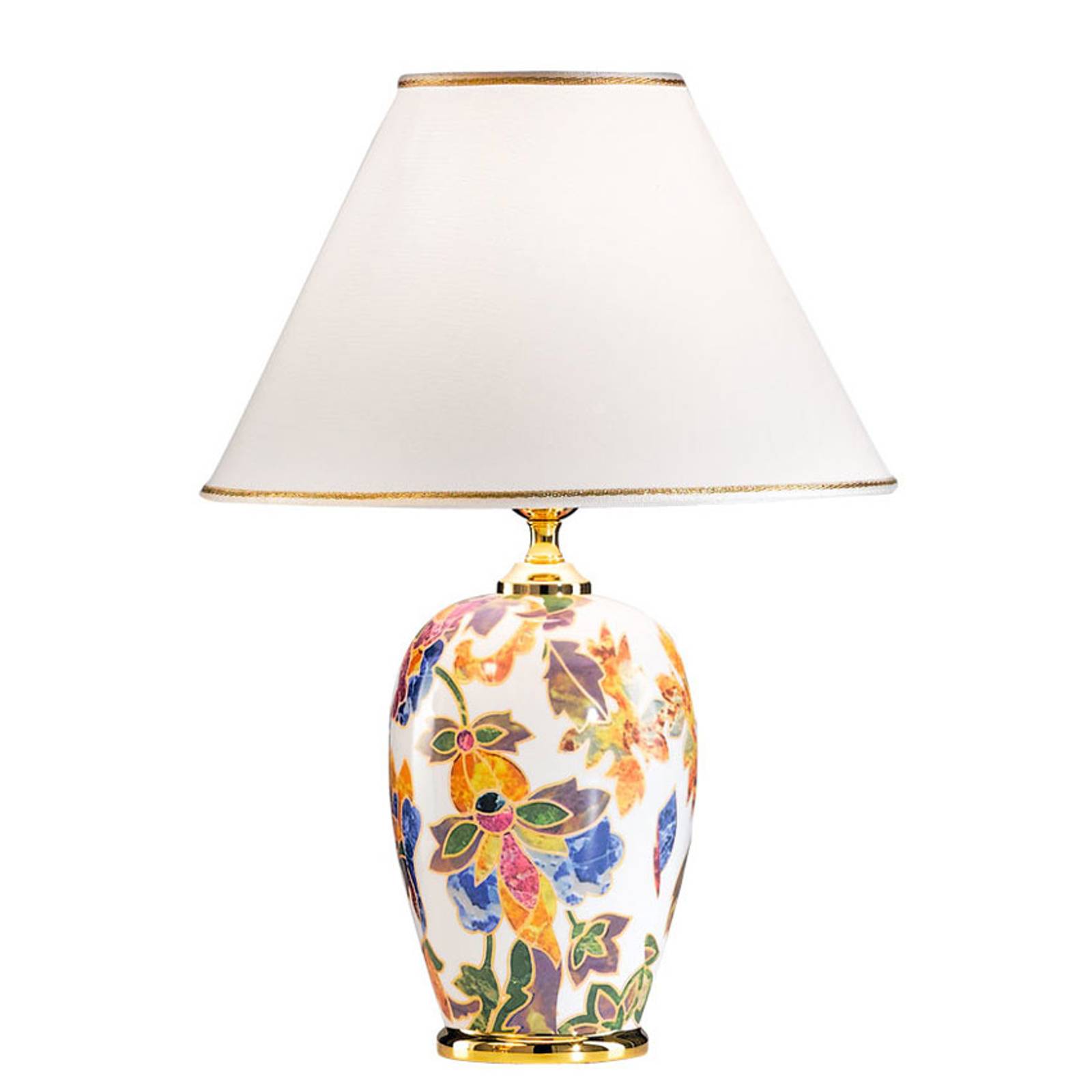 austrolux Stolní lampa Damasco se zlatem 24 karátů, Ø 40 cm, Obývací pokoj / jídelna, keramika, textil, E27, 100W, K: 60cm
