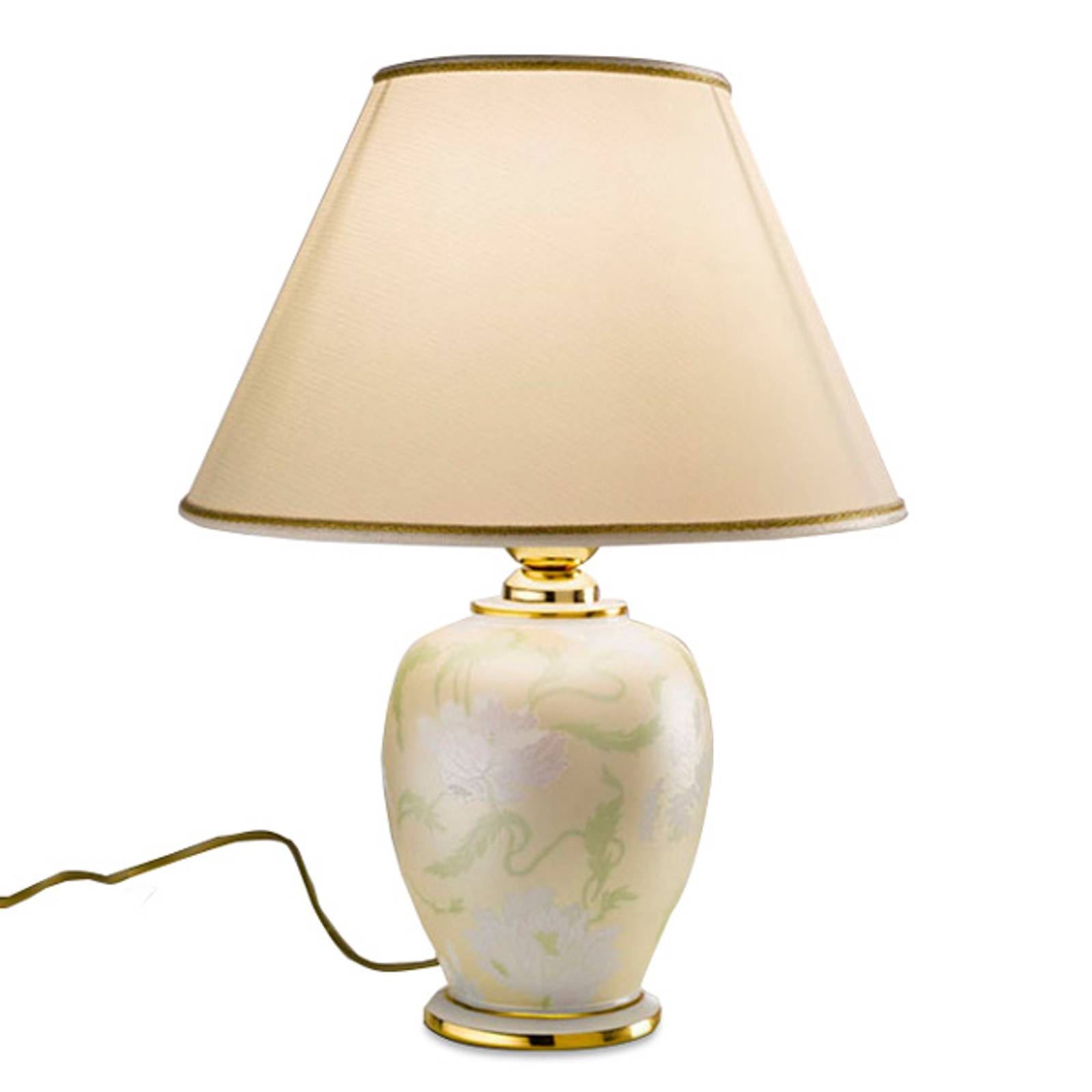 austrolux Stolní lampa Giardino Perla, ruční malba, Ø 40 cm, Obývací pokoj / jídelna, keramika, textil, E27, 100W, K: 57cm