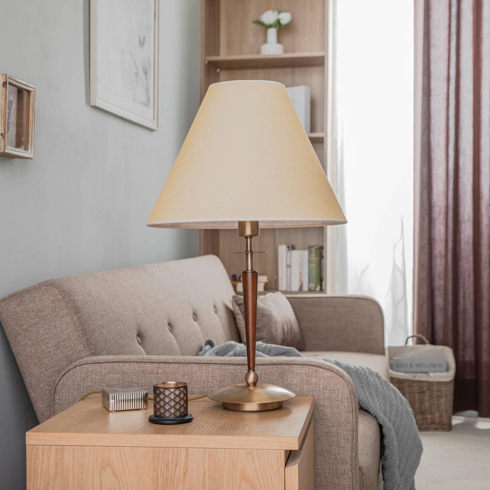 Avonni Stolní lampa HML-9009-1EB s textilním stínidlem, Obývací pokoj / jídelna, kov, textil, dřevo, E27, 60W, K: 65cm