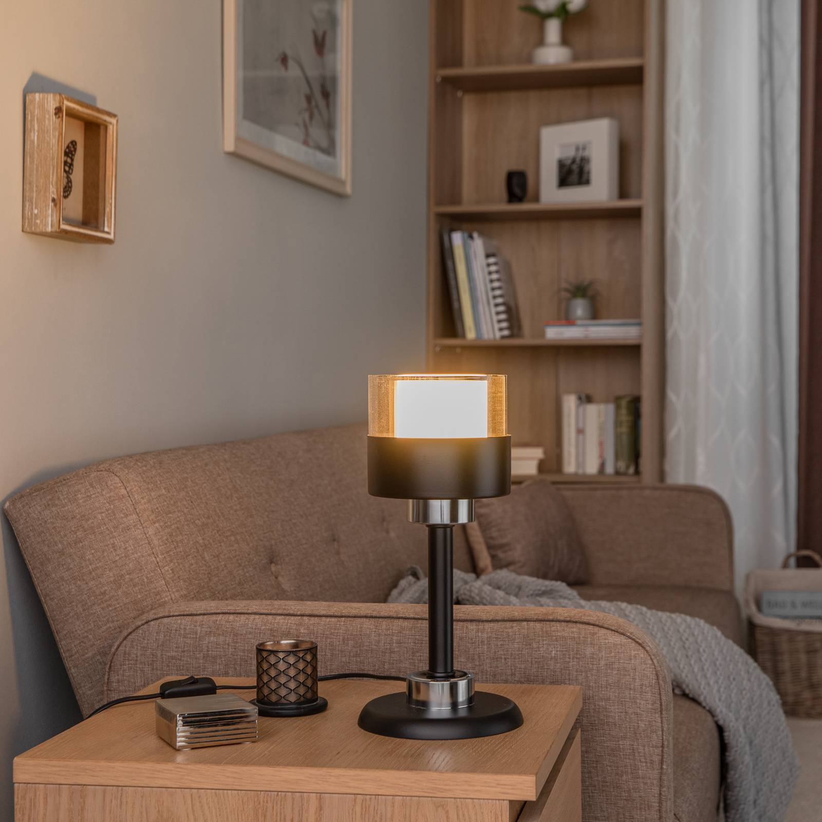 Avonni Stolní lampa ML-4288-1BSY z kovu a skla, Obývací pokoj / jídelna, železo, sklo, E27, 60W, K: 36cm