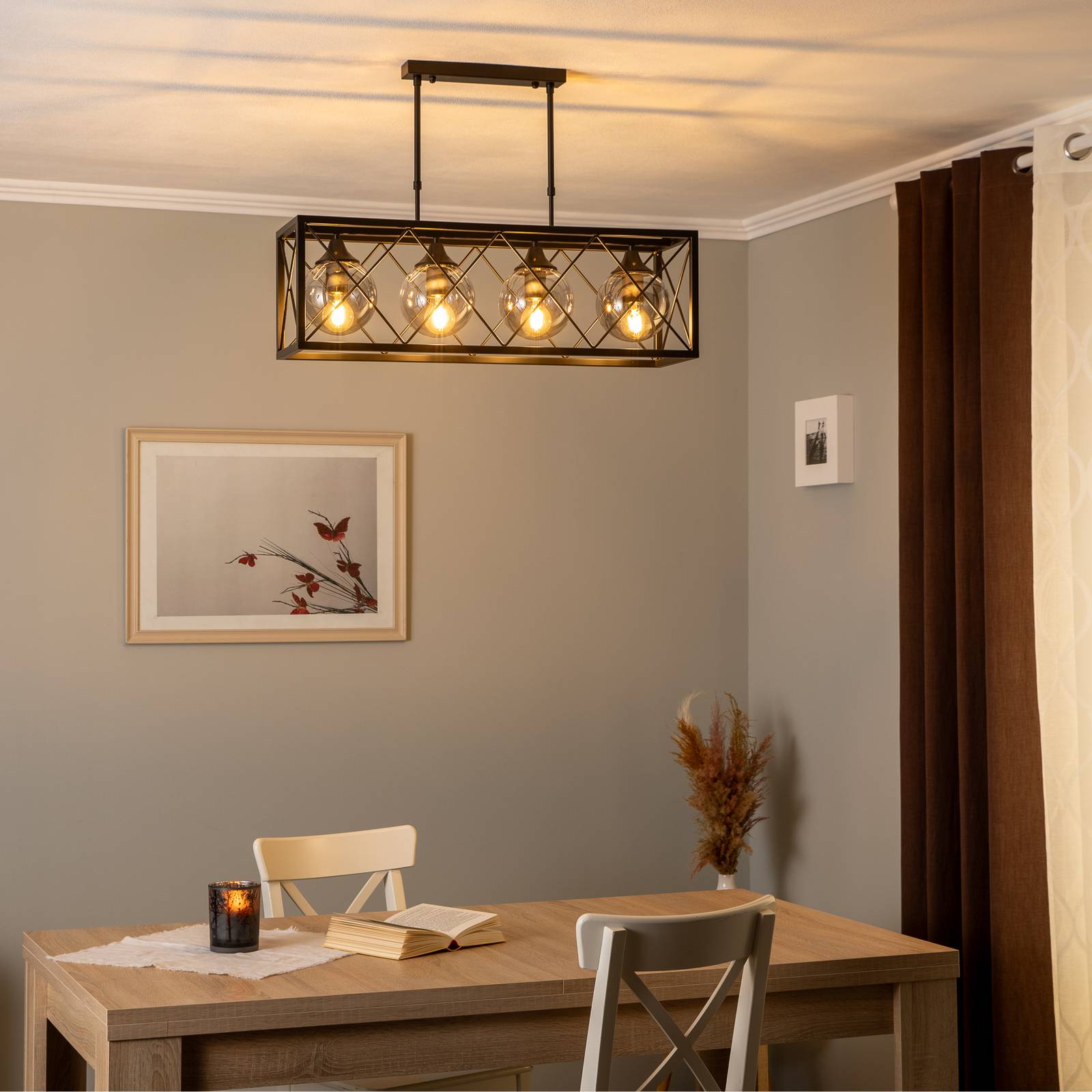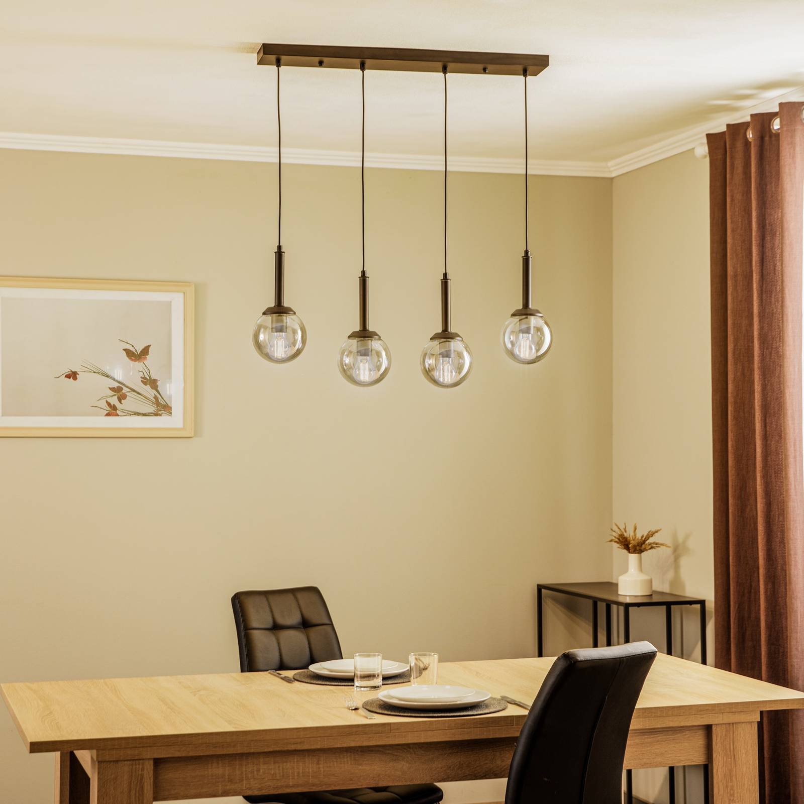 Avonni Závěsné světlo AV-1732-4Y-BSY černá, čtyři zdroje, Obývací pokoj / jídelna, železo, sklo, E27, 60W, P: 80 cm, L: 25 cm