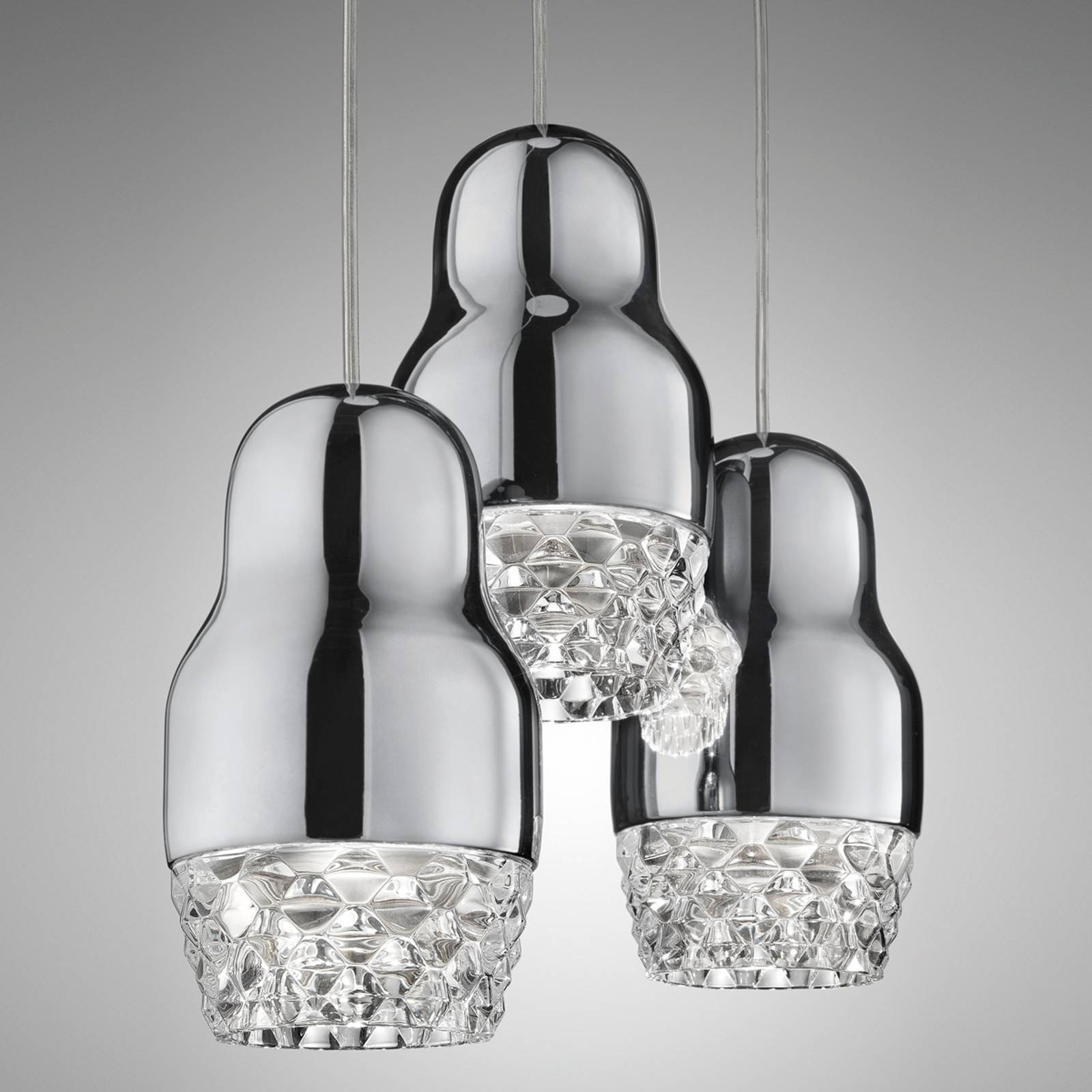 Axo Light Axolight Fedora – závěsné světlo LED chrom, 3zdr, Obývací pokoj / jídelna, hliník, sklo, GU10, 7.5W, K: 19cm