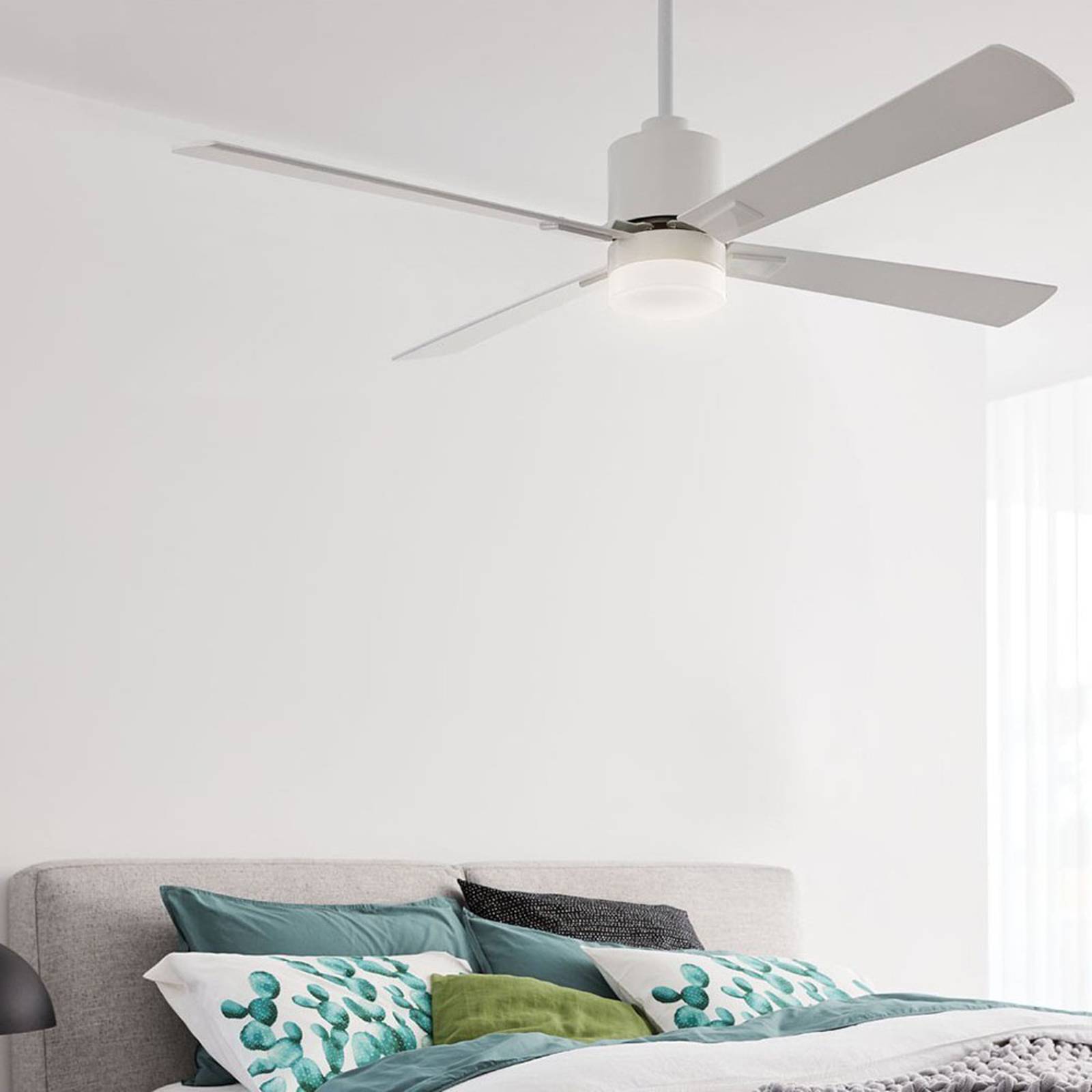 Beacon Lighting Stropní ventilátor Whitehaven, bílý, DC, tichý, 142 cm, Obývací pokoj / jídelna, Plastové, K: 30cm